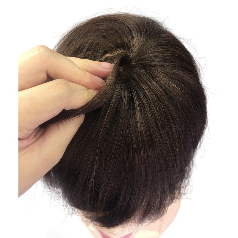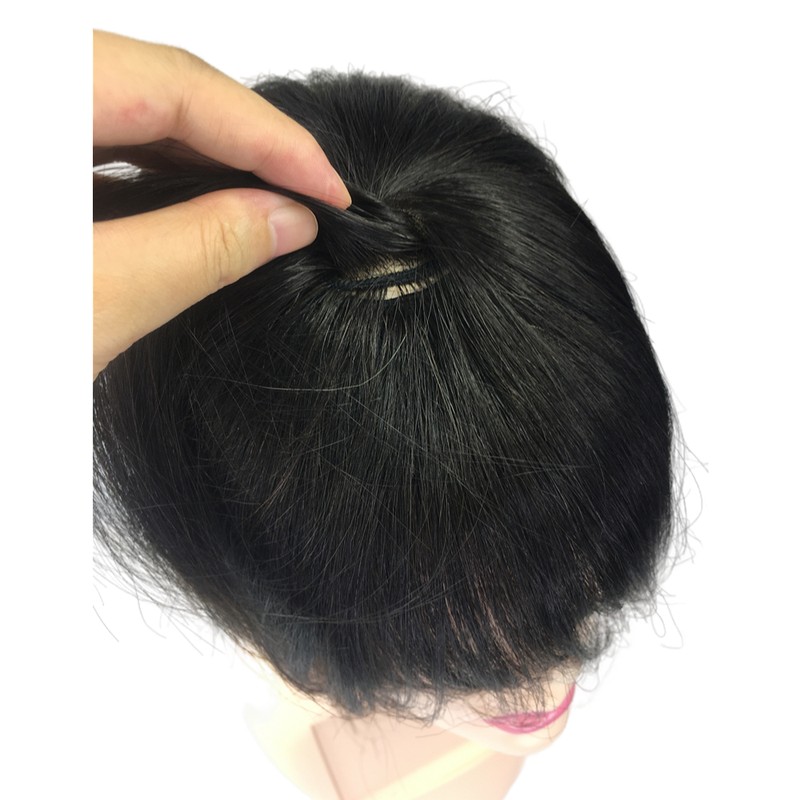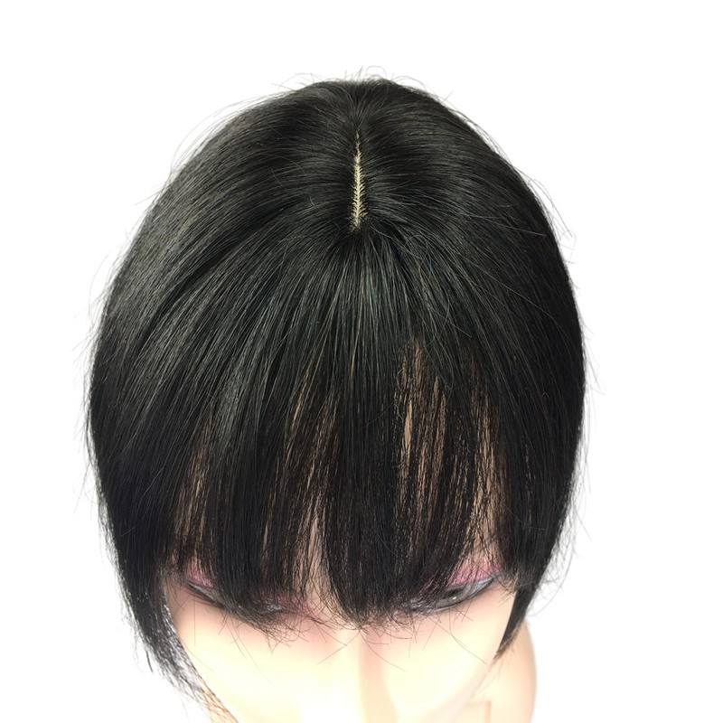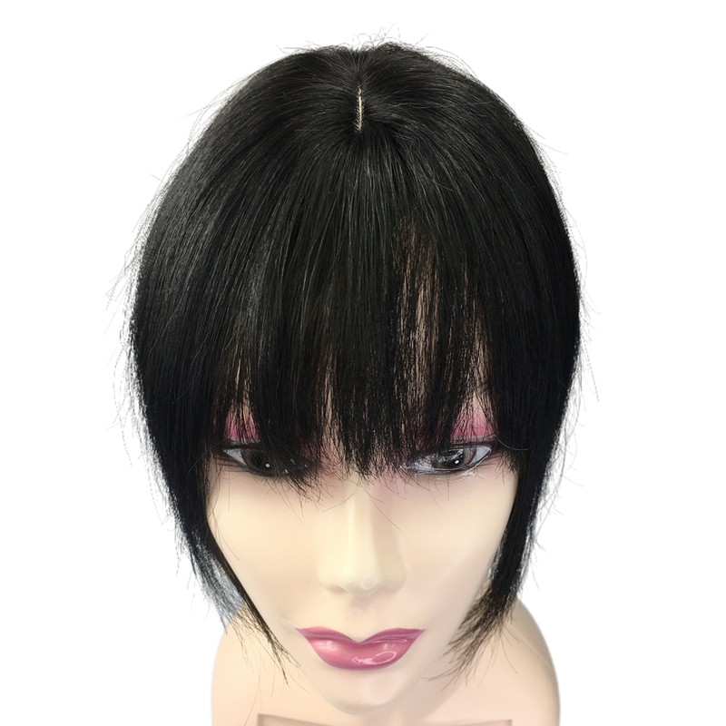 Halo Lady Real Natural Human Hair Topper Pad Rechte Haarstukje Met Pony Cover Wit Haaruitval Voor Vrouwen 8-12Inch Machine Remy