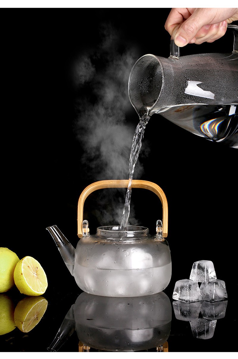 1. gemaakt van premium grade borosilicaat hittebestendig glas, Weerstand temperatuur-30 °-150 °. het kan worden verwarmd onder een open vlam. Natuurlijk, we niet raden het te gebruiken het vuur aan de kook water, omdat het handvat van de theepot zal branden uw handen na verwarming.