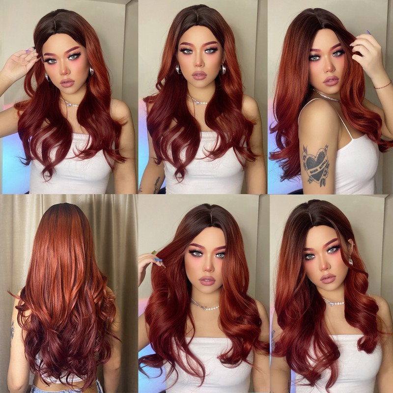 Henry Margu Ombre Bruin Blonde Pruik Lang Golvend Middendeel Kostuum Cosplay Partij Synthetische Pruik Voor Vrouwen Afro Hittebestendige Fibre
