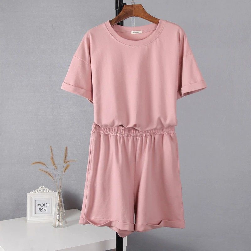 Hirsionsan Zomer Katoen Sets Vrouwen Casual Twee Stukken Korte Mouwen T-Shirts En Hoge Taille Korte Broek Solid Outfits Trainingspak
