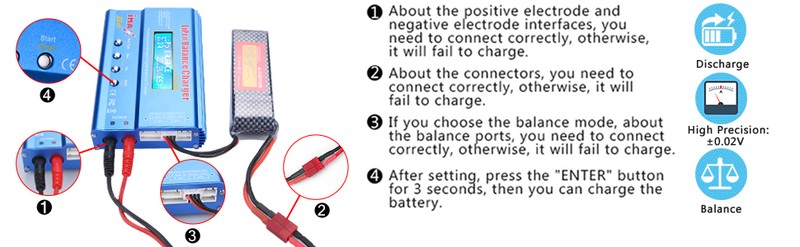 2. individuele cel balancing Li-Ion, LiPo en LiFe staat Ni-Cd en NiMH staat