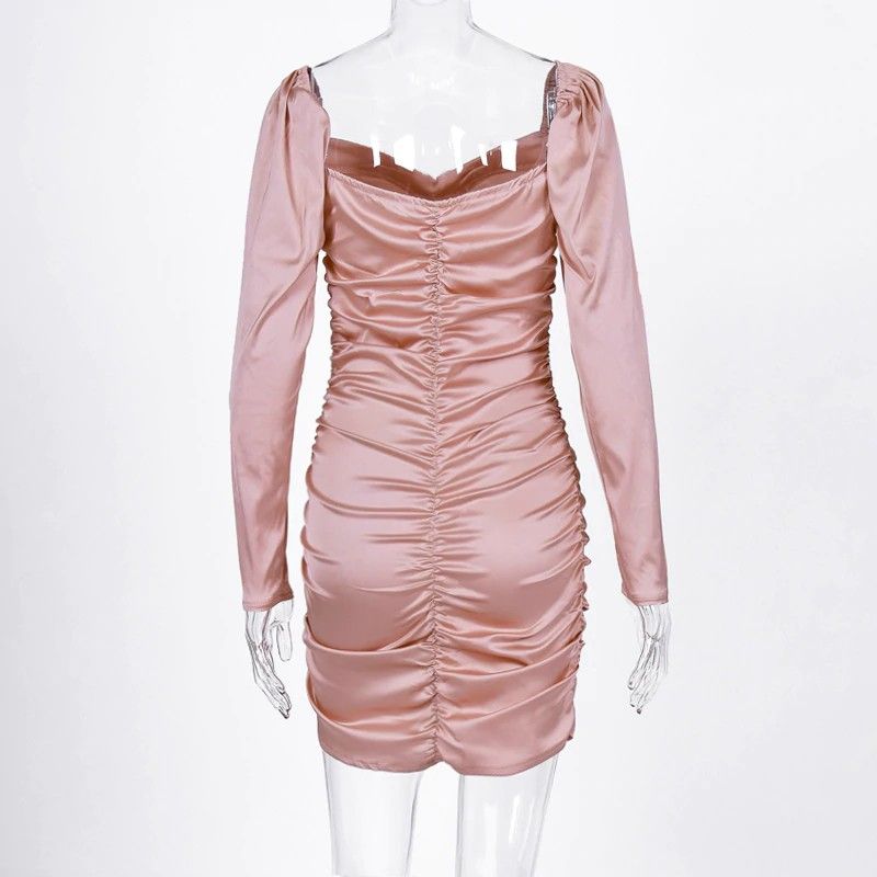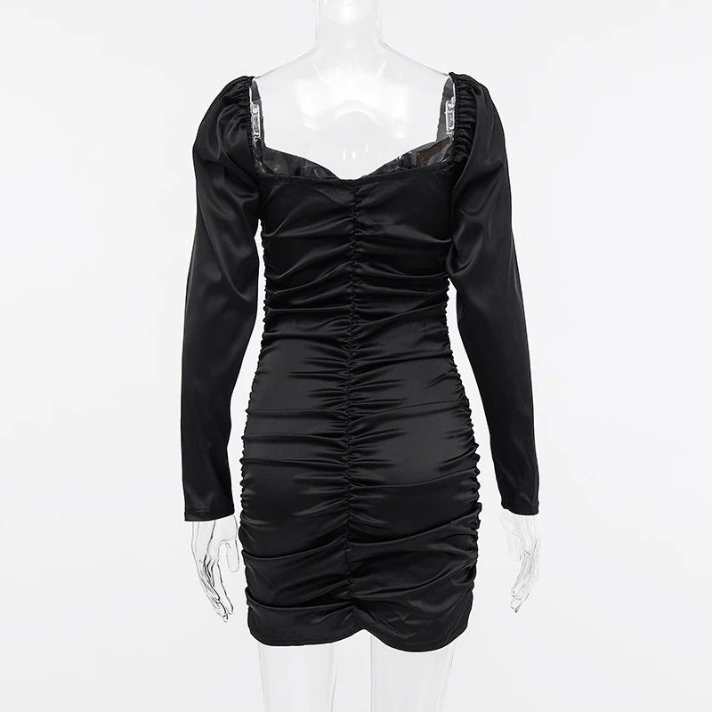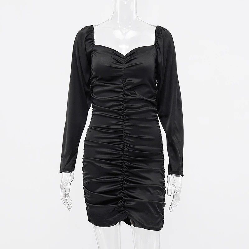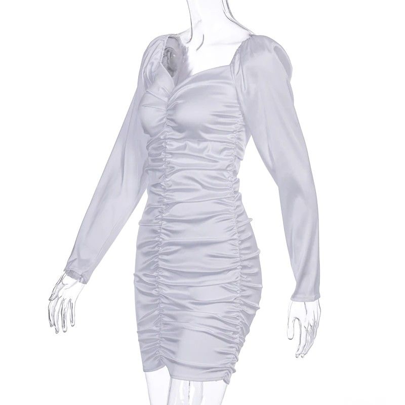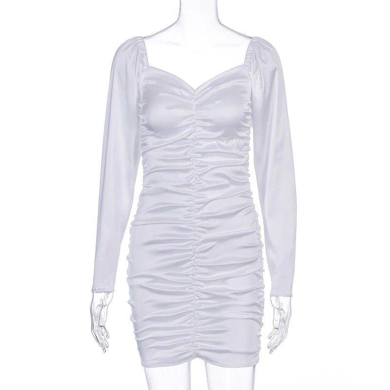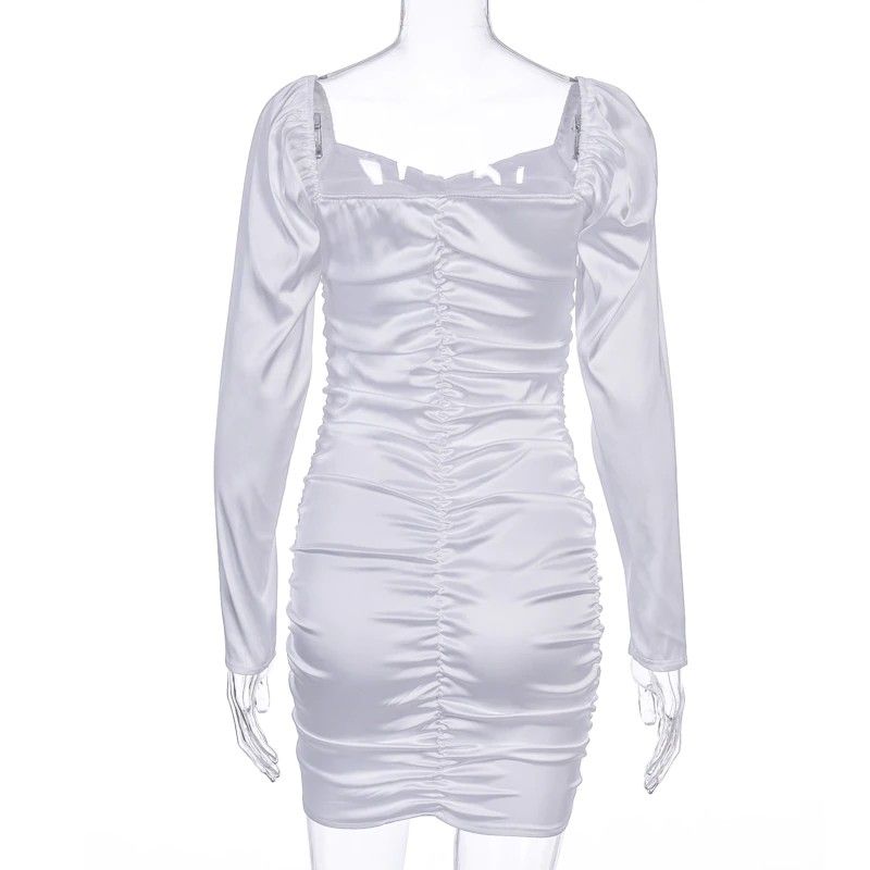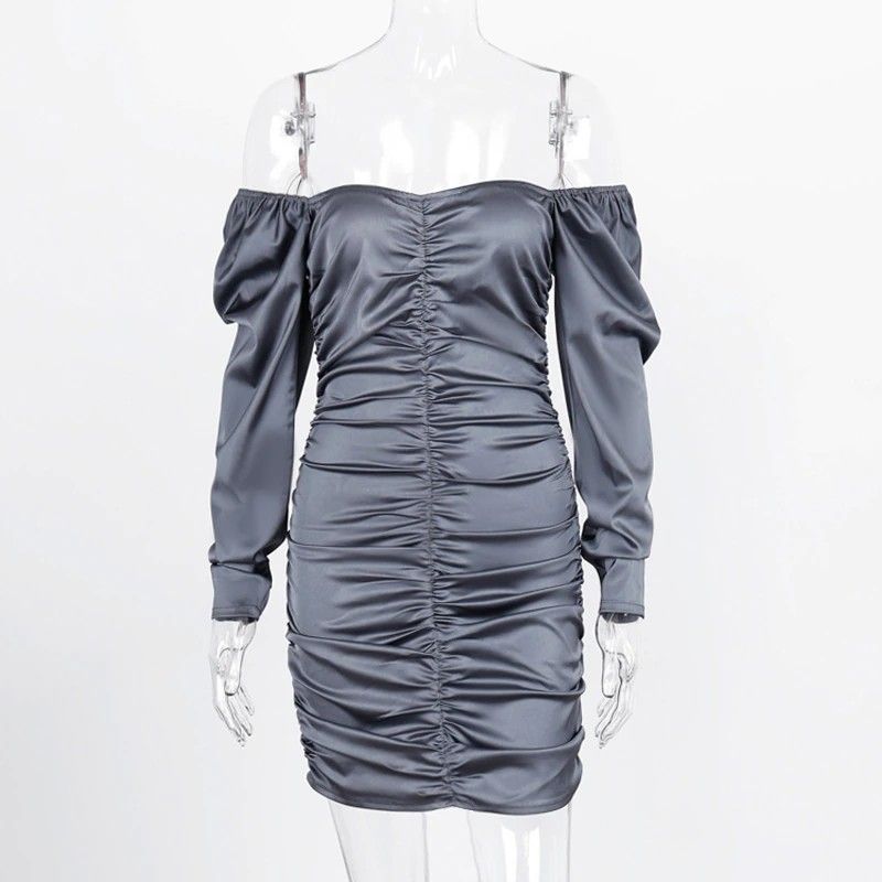 Hugcitar Nieuwste Lange bladerdeeg Mouwen Slash Hals Satin Plisse Sexy Mini Jurk Herfst Winter Vrouwen Solid Party Elegant Streetwear Outfi