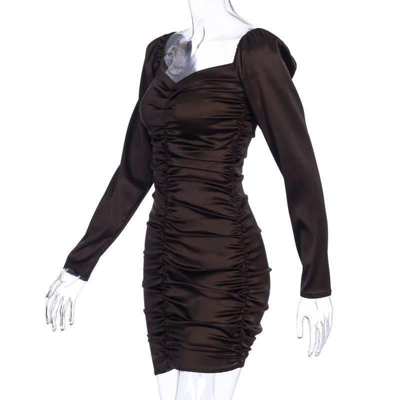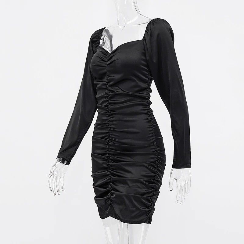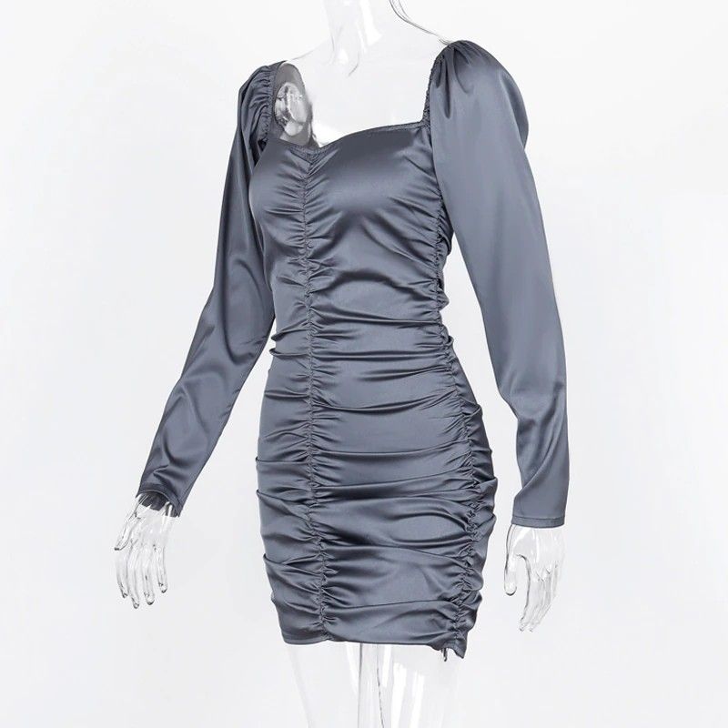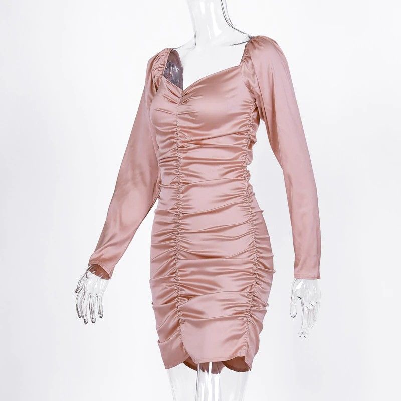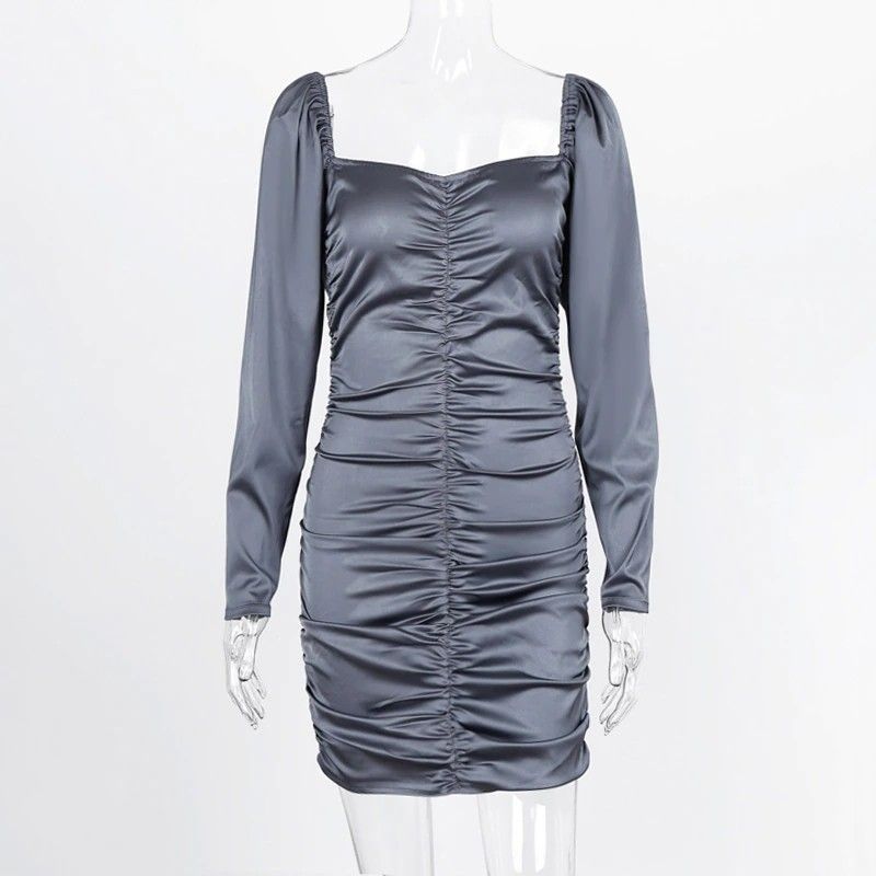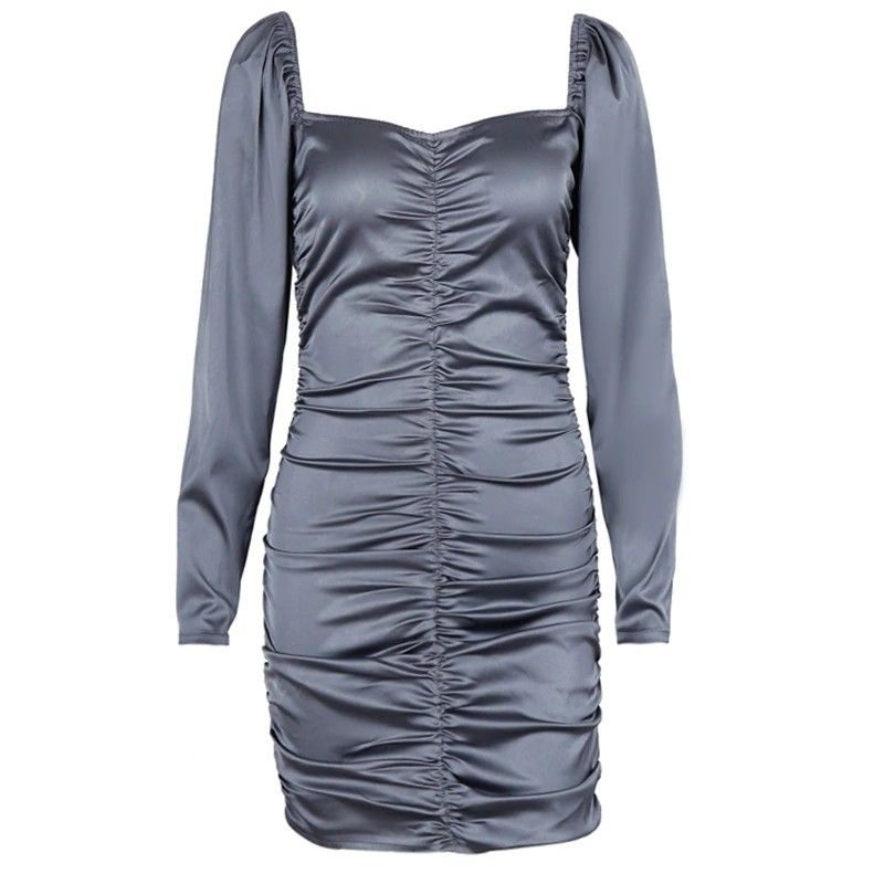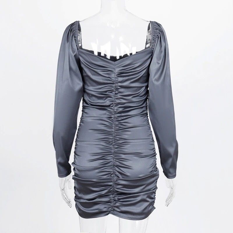 Hugcitar Nieuwste Lange bladerdeeg Mouwen Slash Hals Satin Plisse Sexy Mini Jurk Herfst Winter Vrouwen Solid Party Elegant Streetwear Outfi