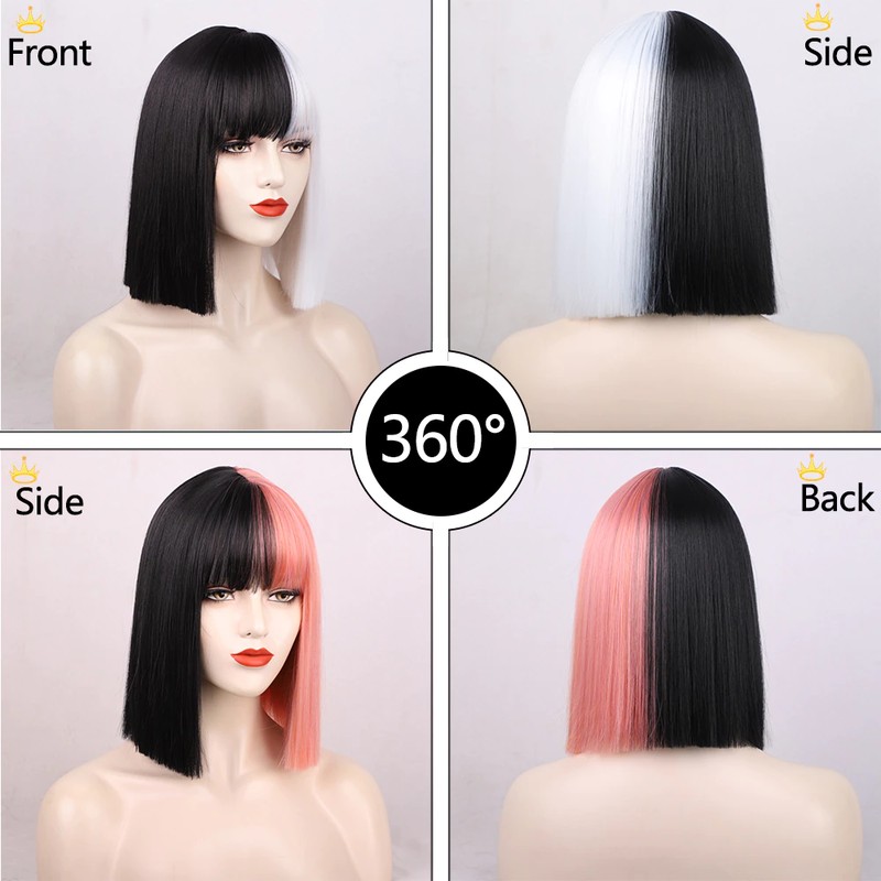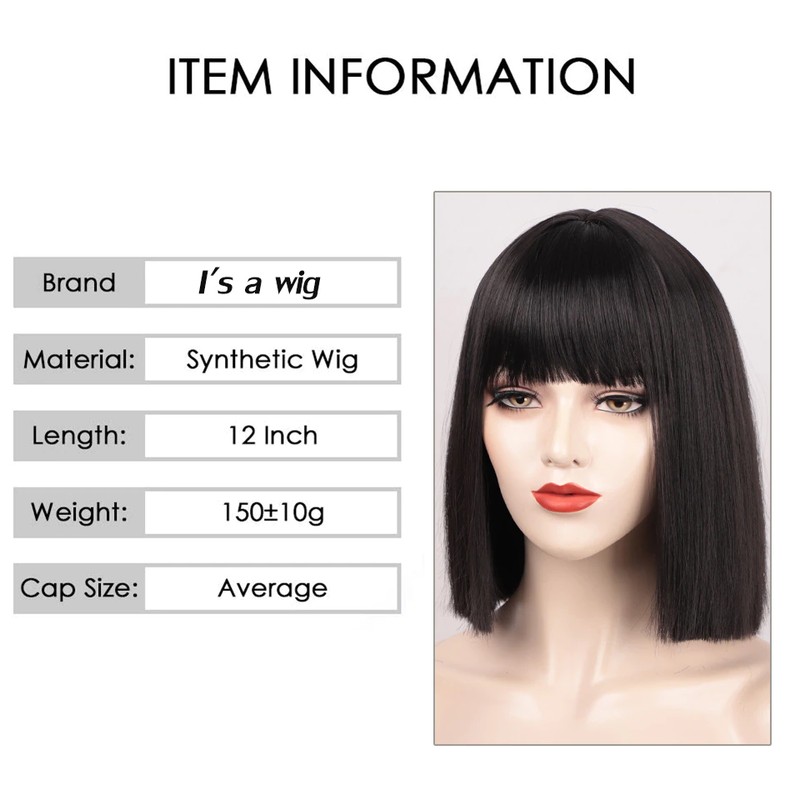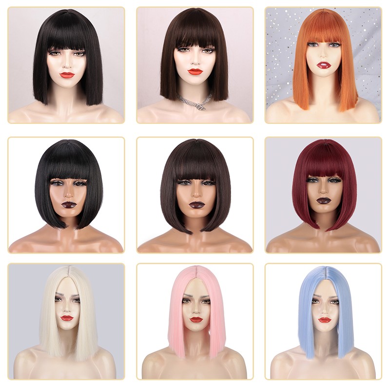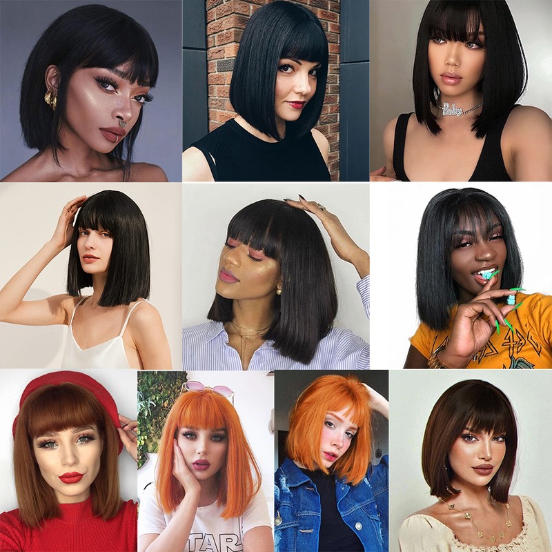 Ik Een Pruik Korte Rechte Zwarte Pruik Met Pony Synthetische Bob Pruiken Voor Vrouwen Roze Rood Paars Bruin Cosplay Haar Voor Party Dagelijks