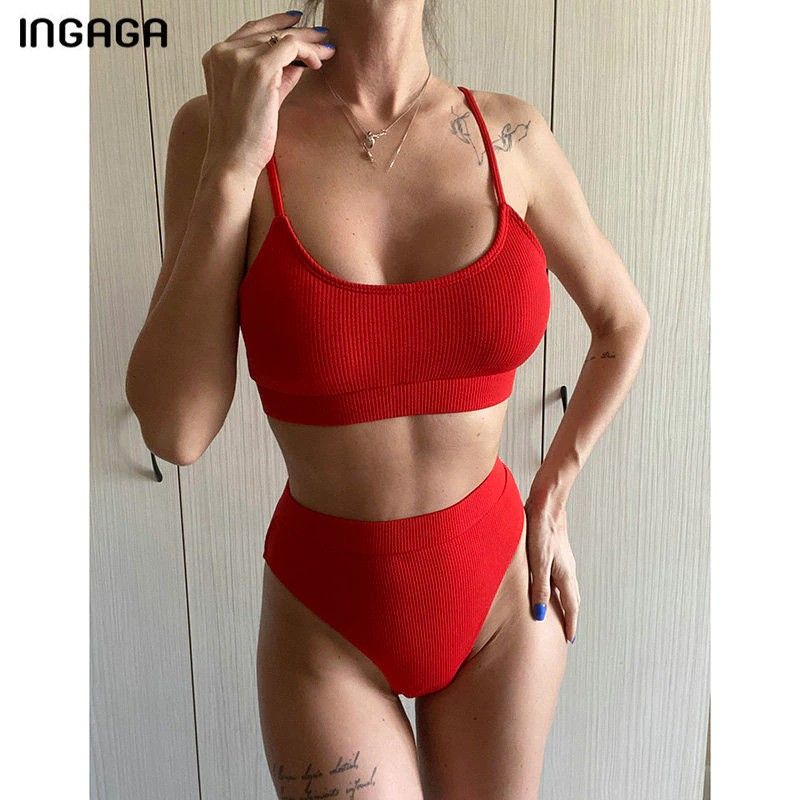 Ingaga Hoge Taille Bikini Badpakken Vrouwen Push Up Badmode Geribbelde Band Badpak Biquini Braziliaanse Bikini Nieuwste Nieuwe Beachwear