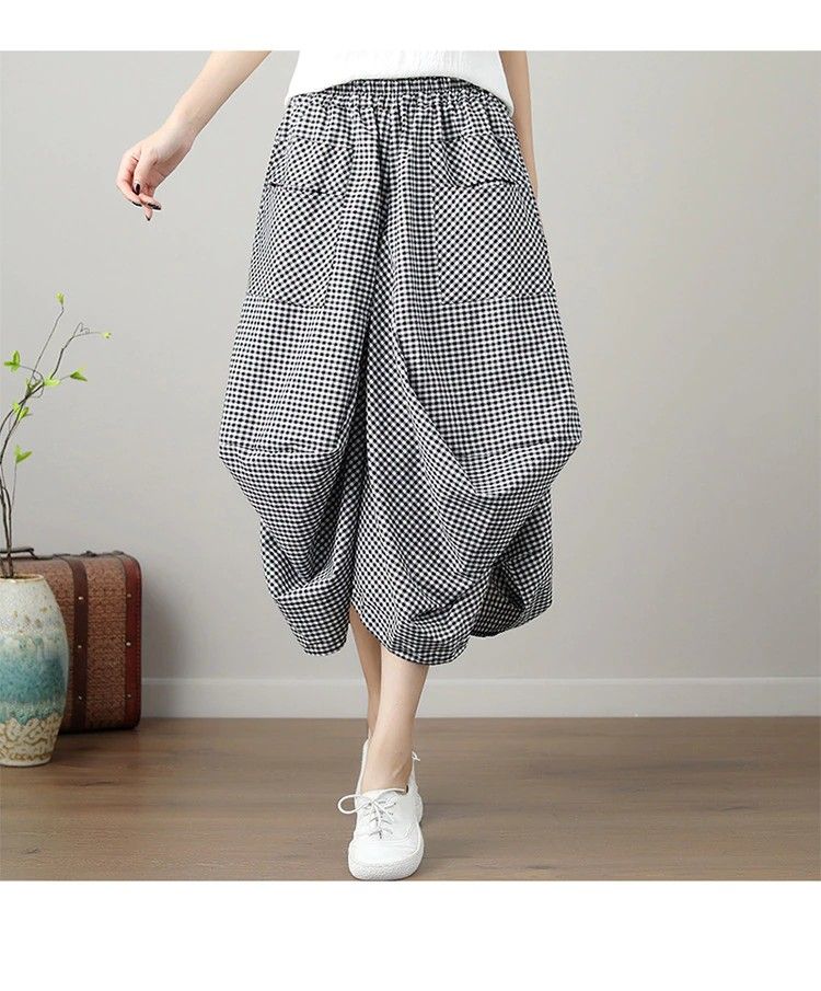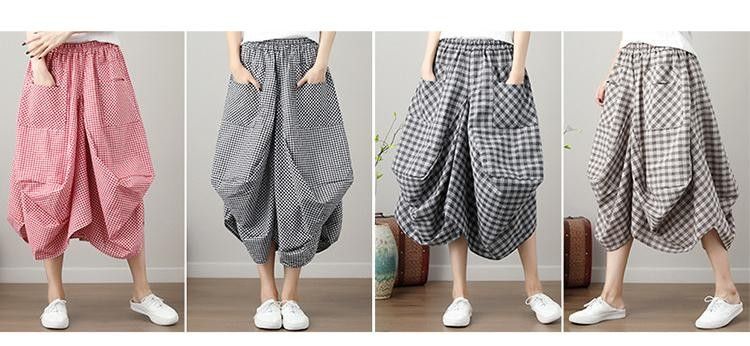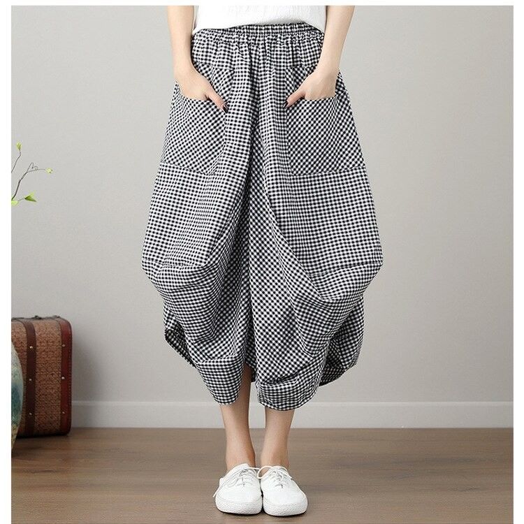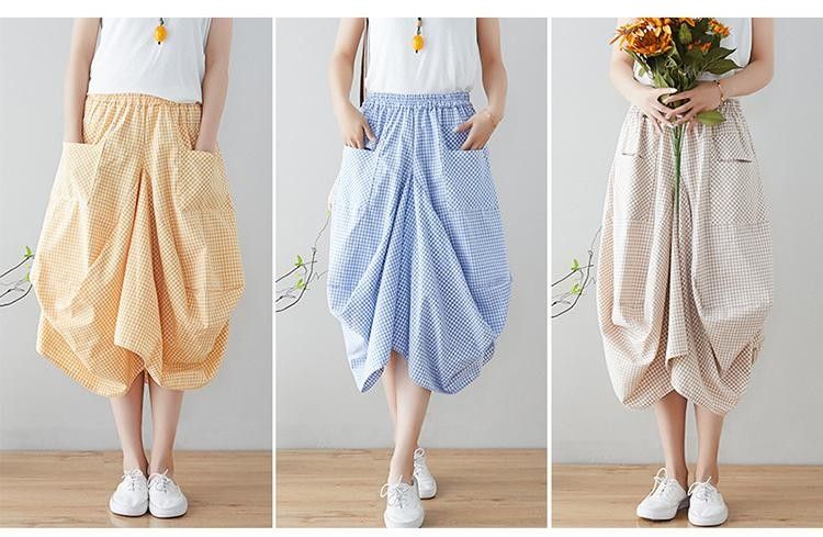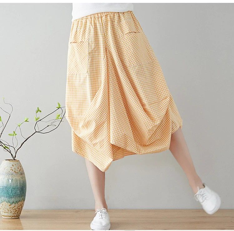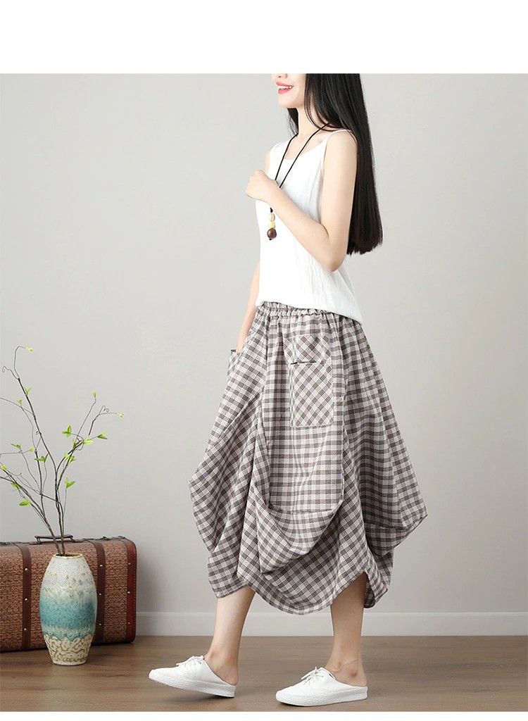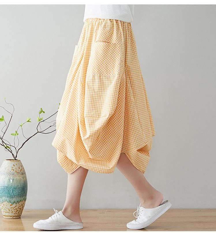 Johnature Nieuwste Nieuwe Zomer Rokken Casual Plaid Knop Zakken Veelkleurig Plooirok knielengte Natuurlijke Comfortabele Vrouwen Rok