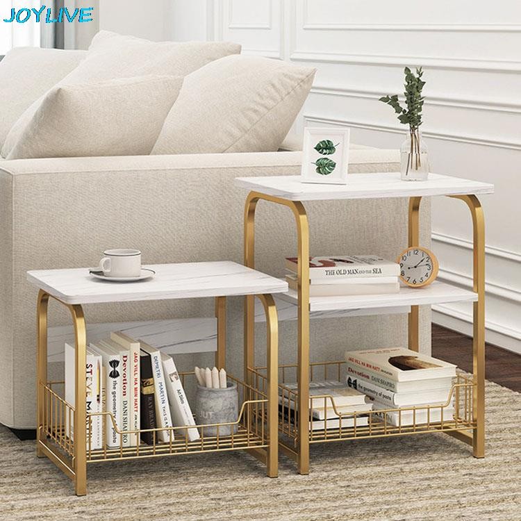 Joylive Houten Marmeren Textuur Salontafel Kast Sofa End Tafel Nachtkastje Met Opslag Mand Lade Voor Slaapkamer Woonkamer