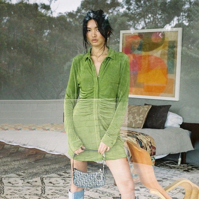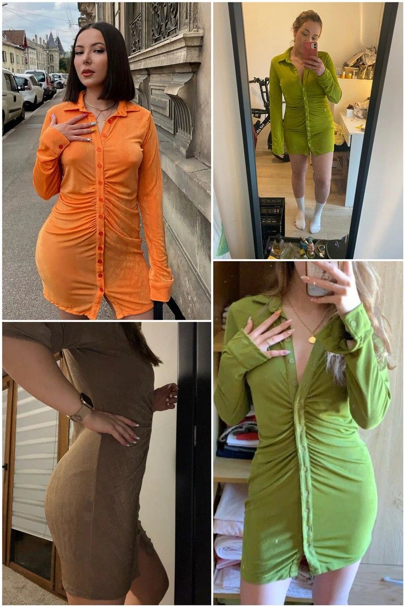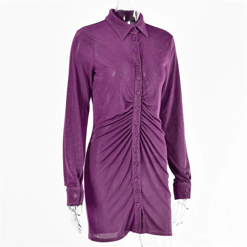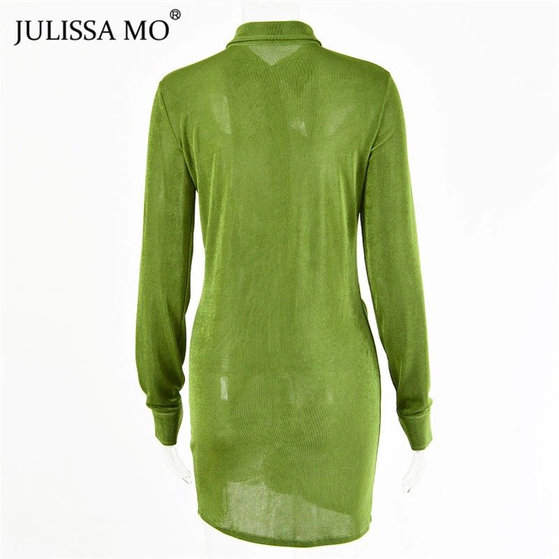 Julissa Mo Herfst Ruches Lange Mouwen Bodycon Vrouwen Jurk Turn-Down Kraag Sexy Mini Jurk Vrouwelijke Knop Slim Party Vestidos Laatste