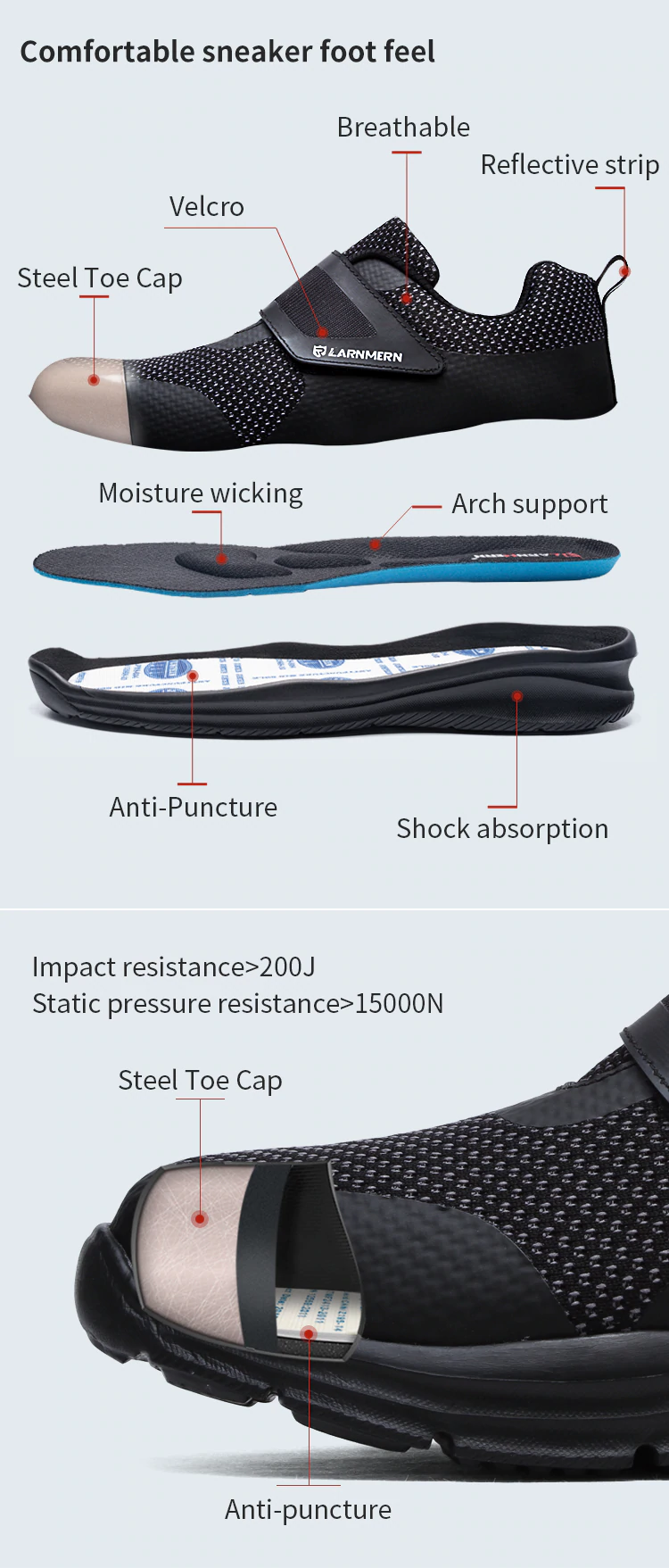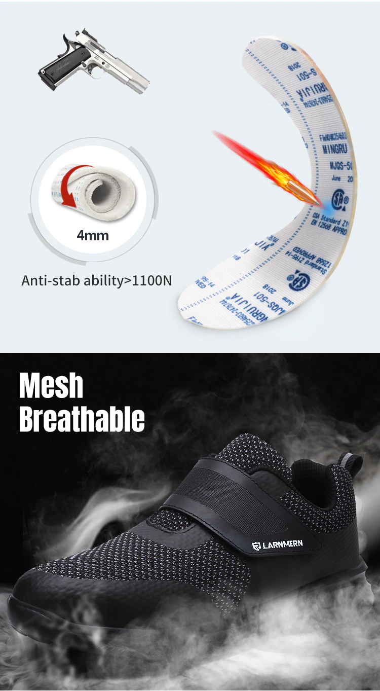 Larnmern Composiet Veiligheidsschoenen Mannen Slip Op Licht Gewicht Stalen Neus Schoenen Schokbestendig Veiligheid Laarzen Klittenband Sneakers Schoenen