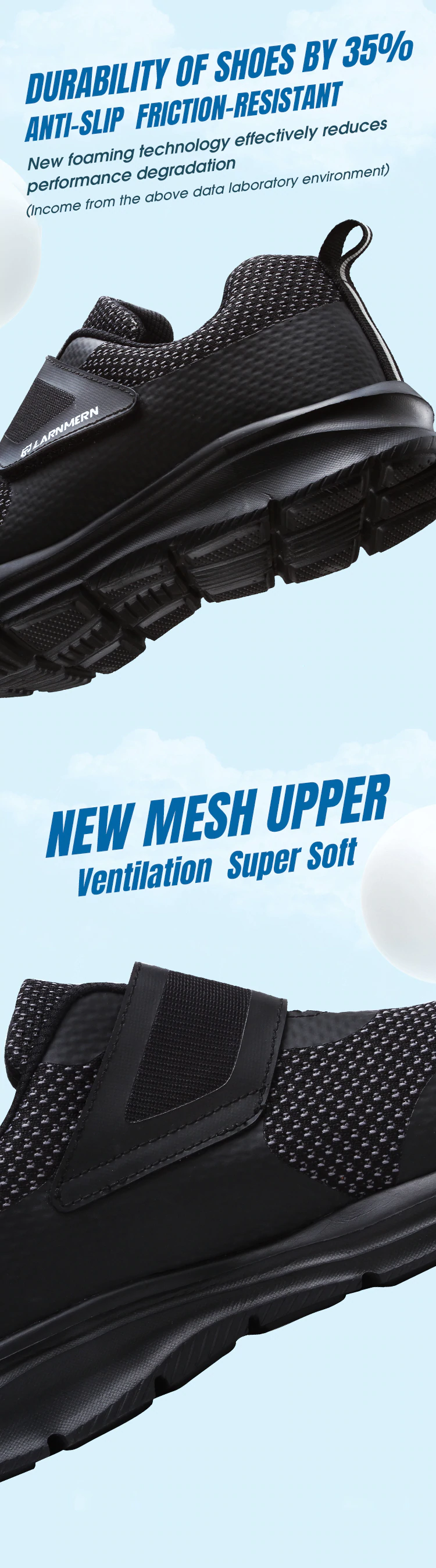 * LARNMERN. SCHUIM TUSSENZOOL: De nieuwe innovatieve tussenzool reageert op elk van uw stappen met een energie impuls. * LARNMERN.FOAM biedt alles: Maximale demping met optimale energie terugkeer evenals uitstekende stabiliteit en langdurig comfort.