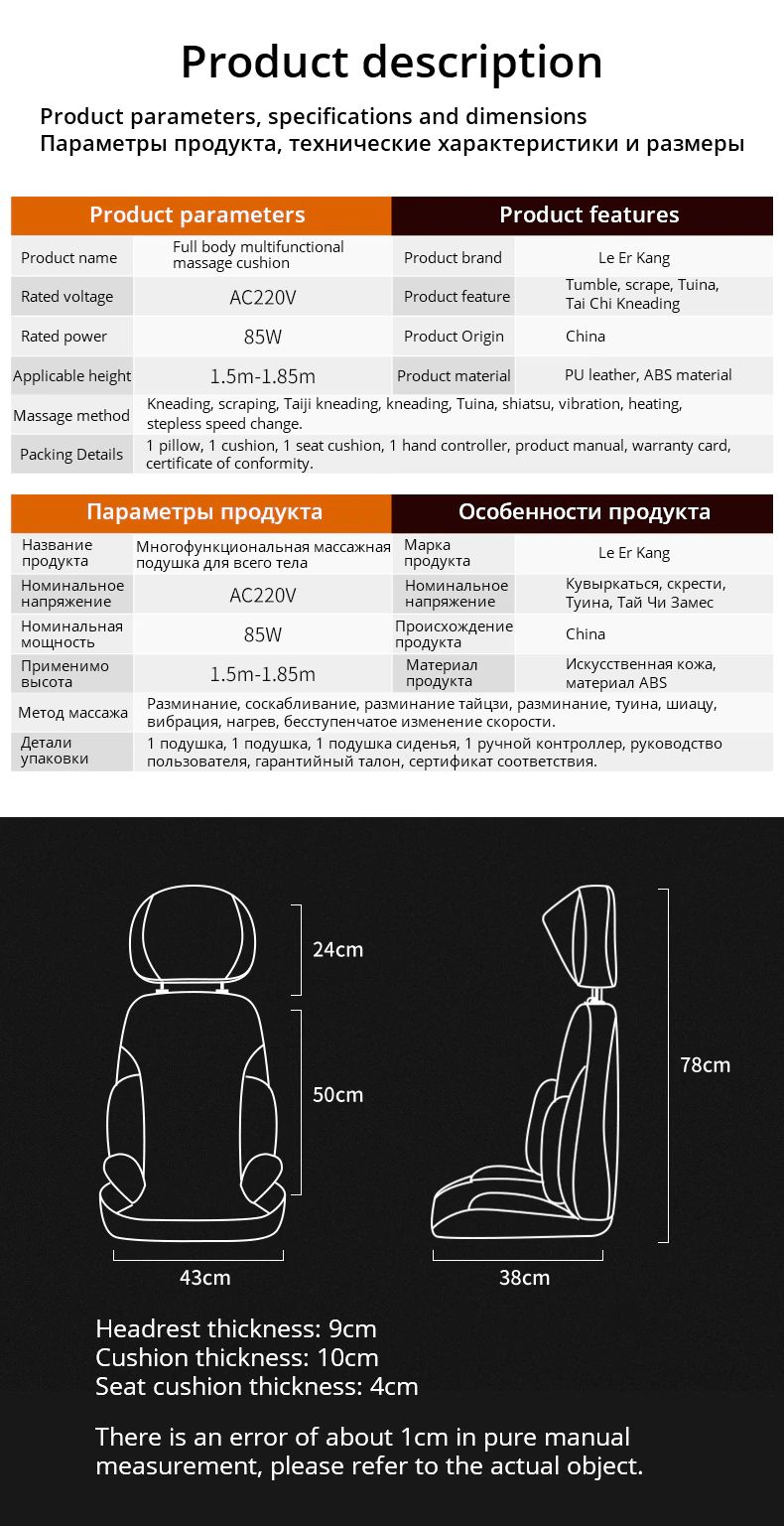 Lek918R Vibrerende Elektrische Cervicale Nek Full Body Massage Kussen Massage Stoel Stimulator Met Roller & Verwarming Apparaat