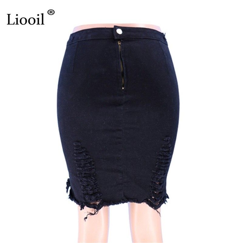 Liooil Asymmetrische Gat Denim Midi Rok Met Kwastje Streetwear Hoge Taille Wassen Verontruste Voor Vrouwen Bodycon Ripped Jeans Rok
