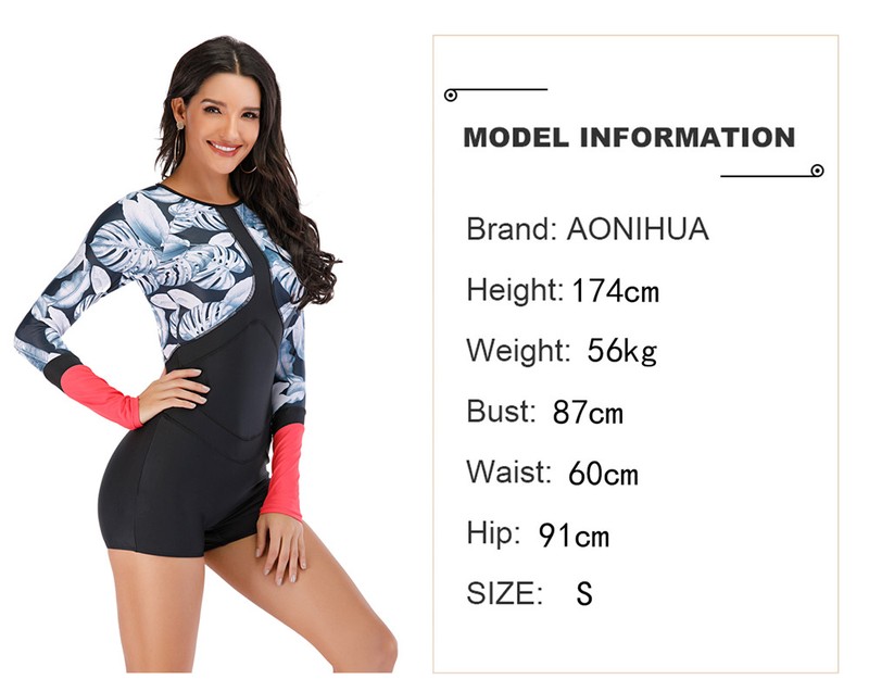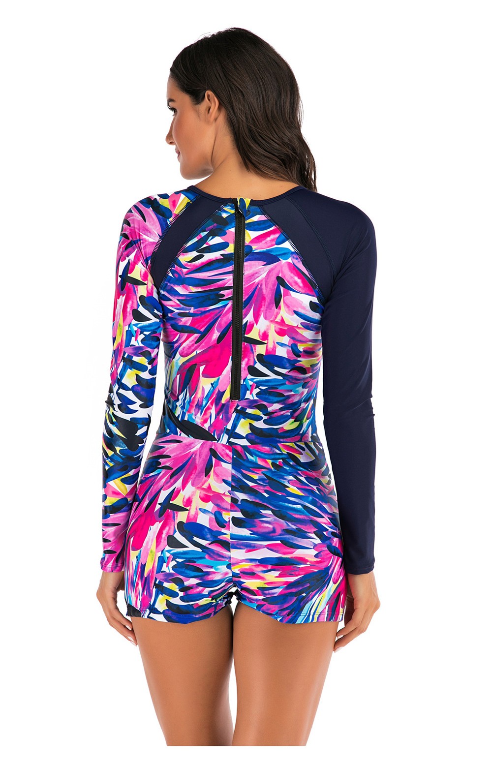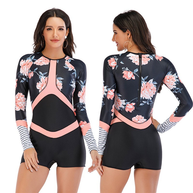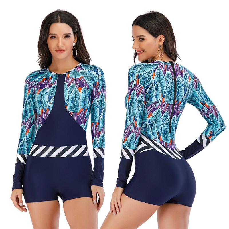 Lange Mouwen Rash Guard Vrouwen Print Badmode Shorts Slipje Een Stuk Badpak Rits Surfen Pak Pad Badpakken Uv Beschermen