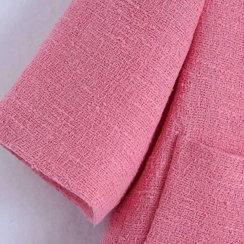 Lvwomn Za Vrouwen 2 Delige Set Pak Blazer Vintage Textuur Korte Mouwen Jas Office Blazer En Elegante Hoge Taille Rok Vrouwelijke