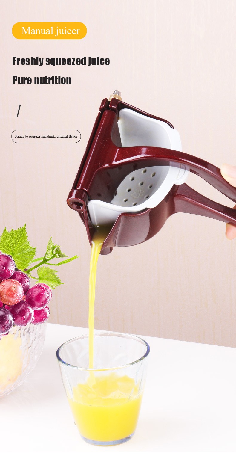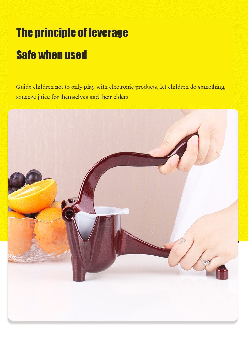 De glad handvat ontwerp van de fruit juicer biedt een comfortabele en stabiele grip, gemakkelijk te grip en comprimeren. De duurzame legering body van de handpers fruitpers bespaart uw handen met geen inspanning, en de voet ontwerp maakt de juicer knijper kan op de tafel eenvoudig en stabiel zonder uitglijden.