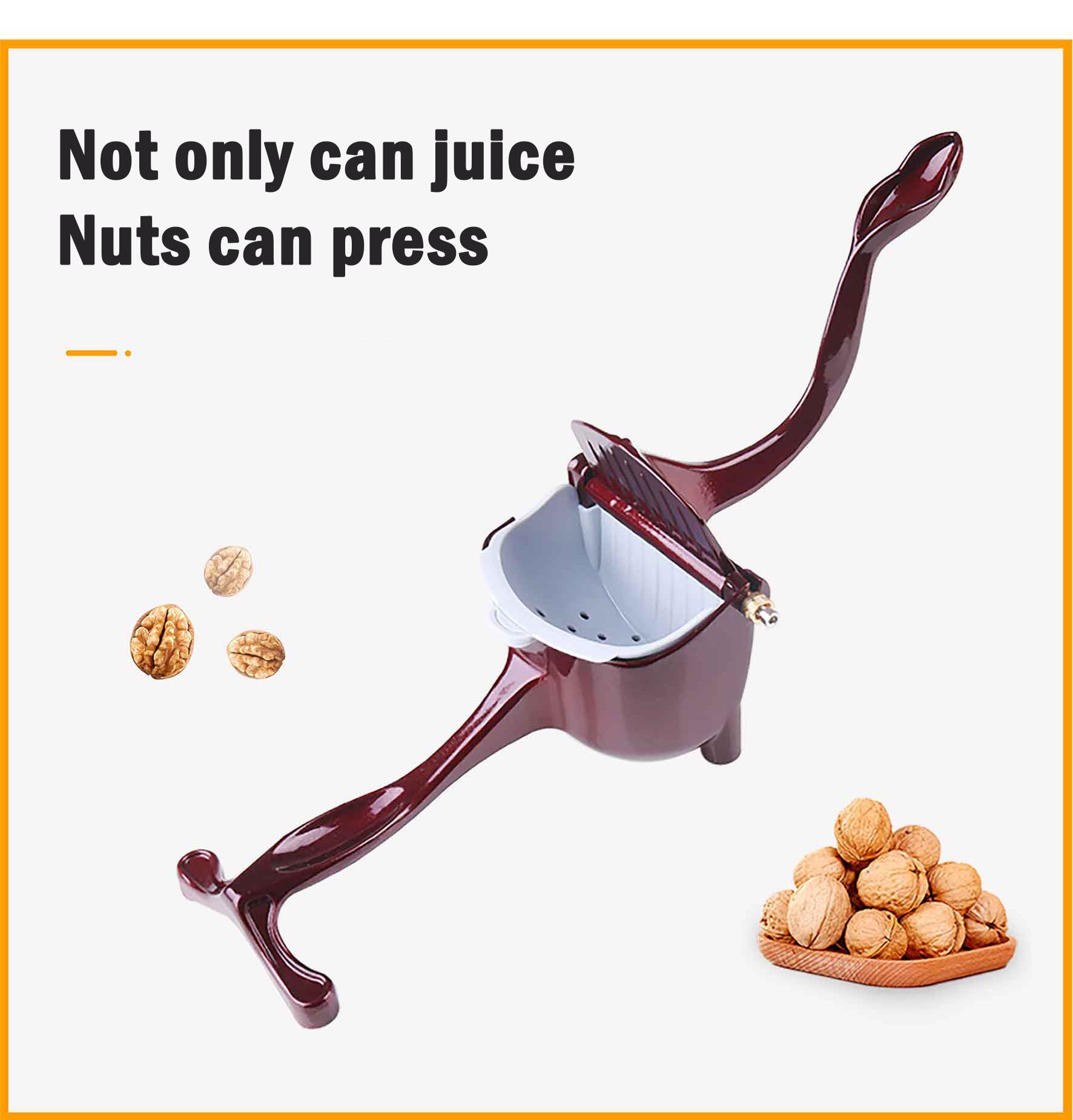 De handmatige fruitpers juicer bevat een hoge sap uitmalingspercentage, kan het niet alleen squeeze watermeloen, orange, citroen, citrus, granaatappel, en andere vruchten maar ook groente sap, zoals tomaten en komkommers. U kunt dit ook multifunctionele handmatige juicer op noten, zoals walnoten.