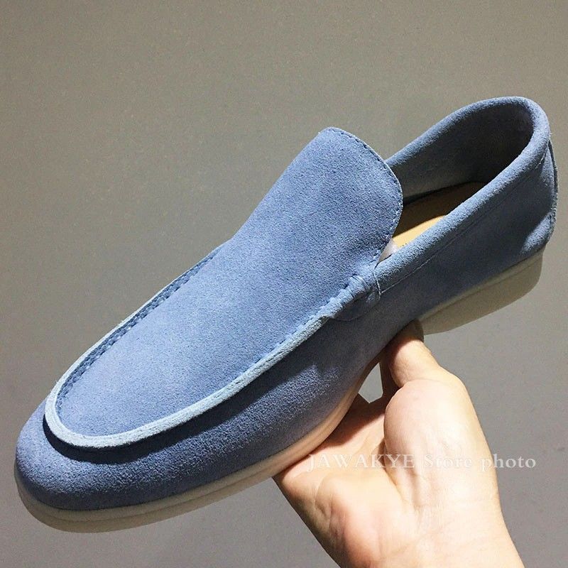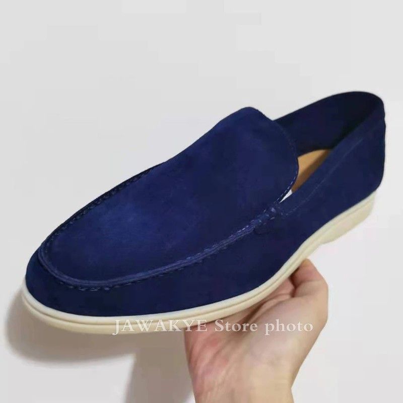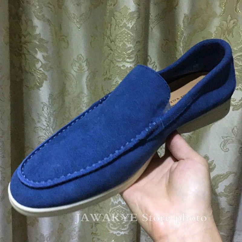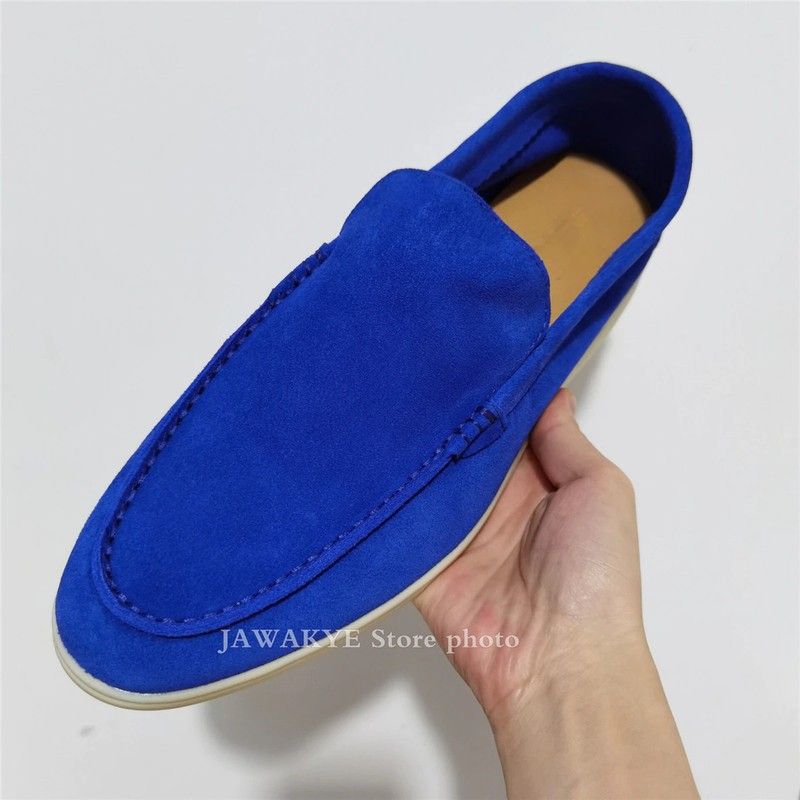 Mannen Kidsuede Lederen Loafers Comfortabele Business Schoenen Voor Mannen Koningsblauw Heren Rijden Schoenen Platte Hak Rubberen Zool Schoenen