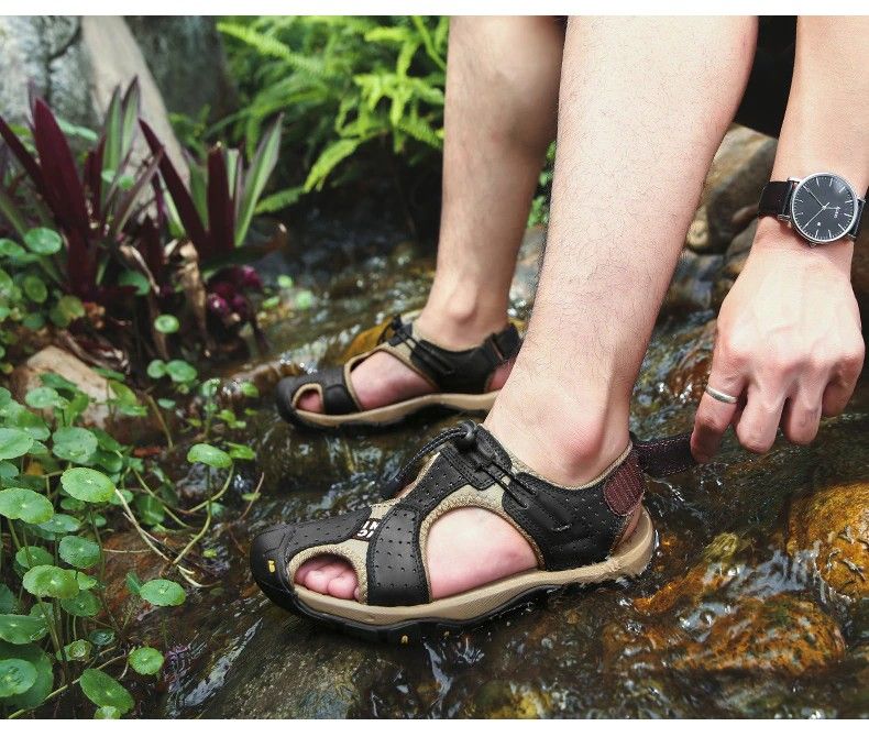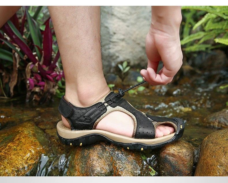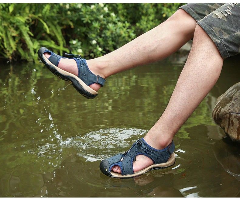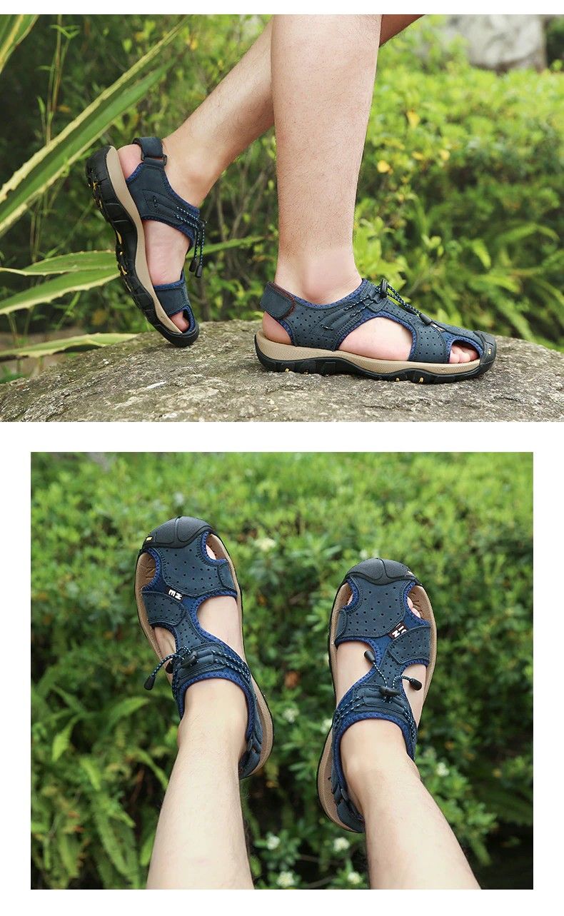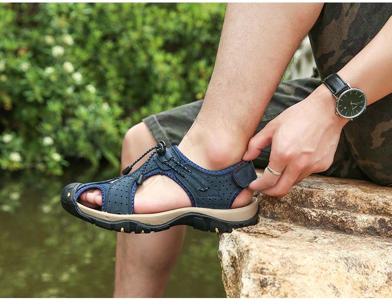 Mannen Sandalen Koeienhuid Lederen Mannelijke Zomer Schoenen Outdoor Strand Gladiator Sandalen Schoenen Voor Mannen Sneakers Sandalias Plus Size 46