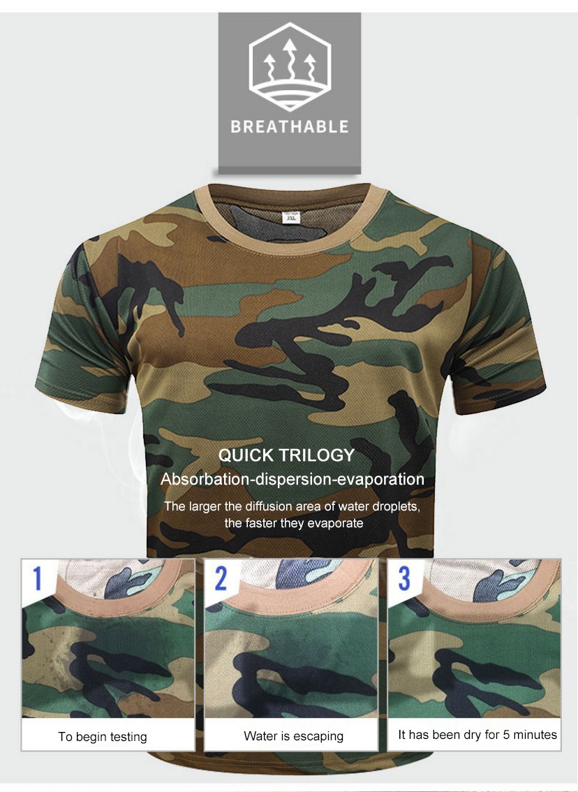 Mens Quick Dry Militaire Tactische T-Shirt Camouflage Leger Fishing Shirt Korte Jacht Wandelen Shirts Camo T-Shirts Tactische Kleding
