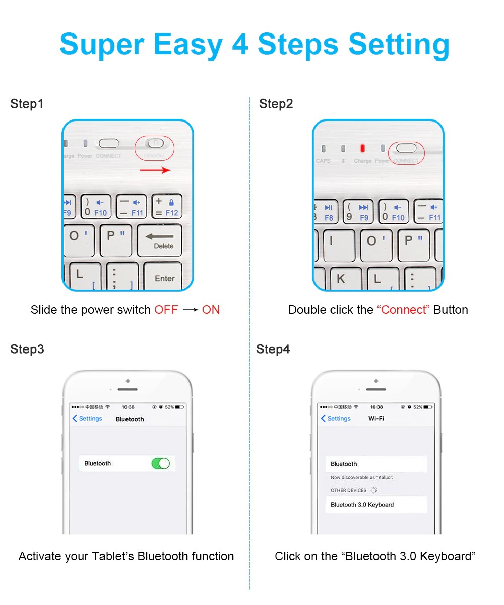 De Bluetooth toetsenbord is compatibel met iOS, Android en Windows systemen. Het is zeer geschikt voor Apple iPhone, iPad, iPad Mini, iPad Pro, iPad Air, android Samsung LG Windows tablet smartphones.