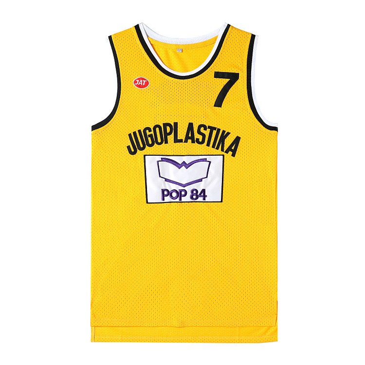 Movie Versie Geel Basketbal Jersey No.7 Kroatië Jugoplastika 7 Kukoc Borduurwerk Outdoor Sneldrogende Ademende Sportkleding