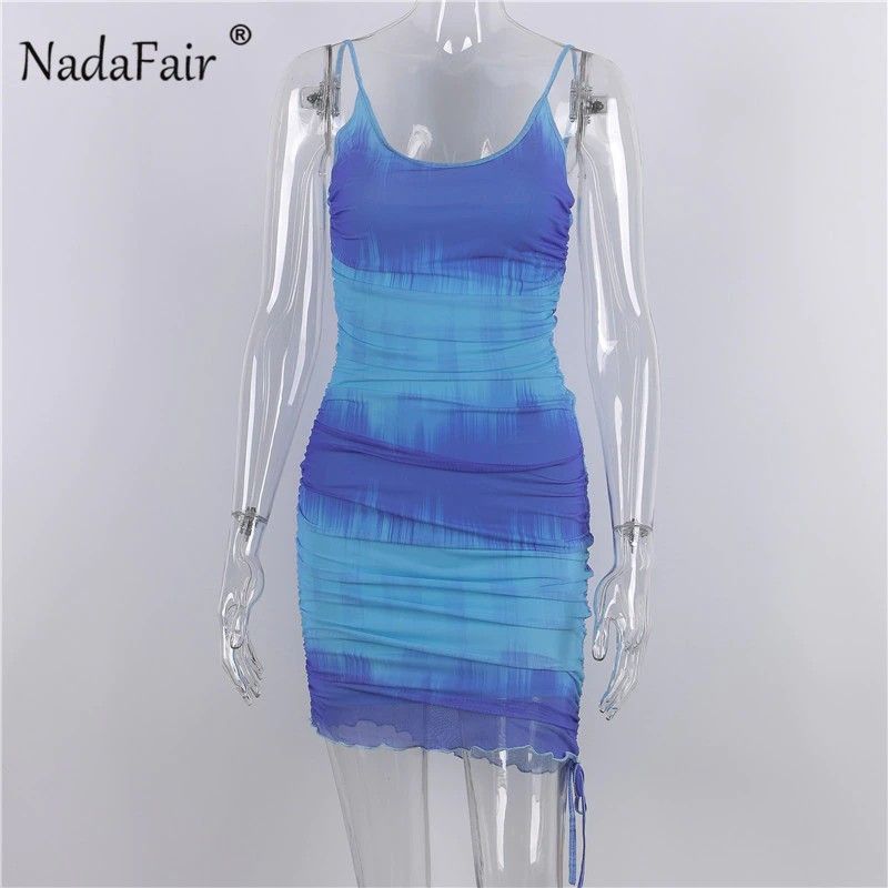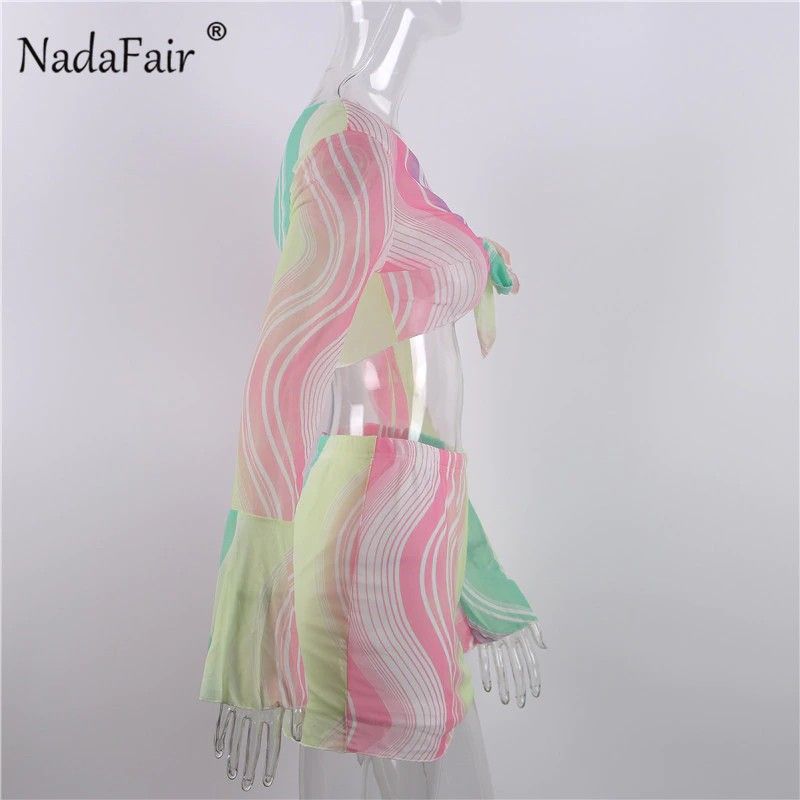 Nadafair Tie Dye Strand Sexy Jurk Vrouwen Tweedelige Set Club Outfits Lange Mouwen Crop Tops En Mini Rokken Bodycon Zomer Jurk