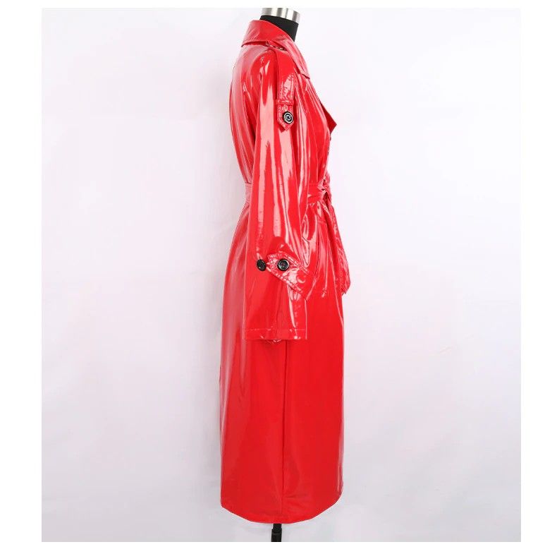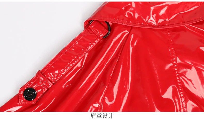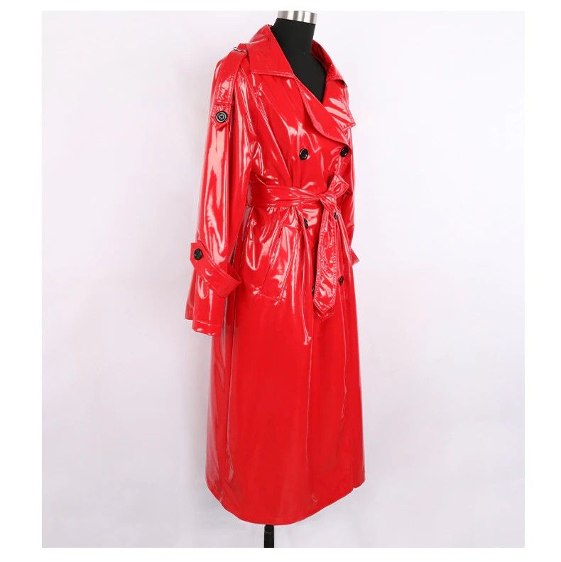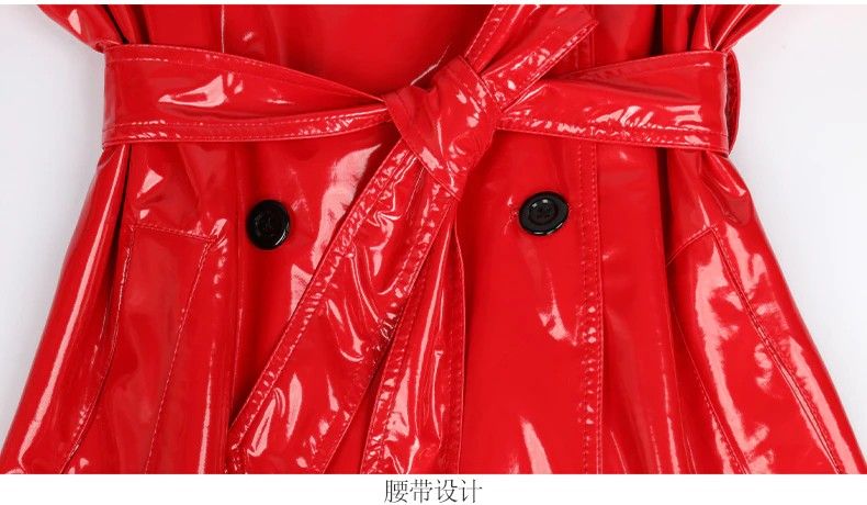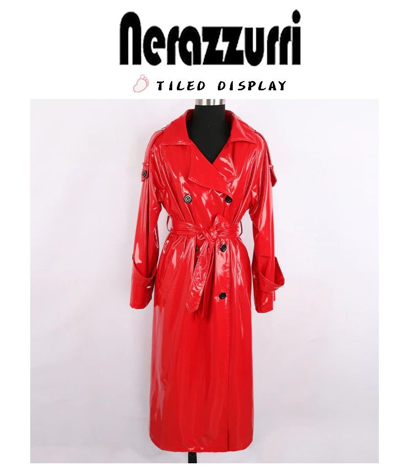Nerazzurri Herfst Lange Rode Waterdichte Reflecterende Lakleer Trenchcoat Voor Vrouwen Double Breasted Plus Size Fashion 5Xl 6Xl