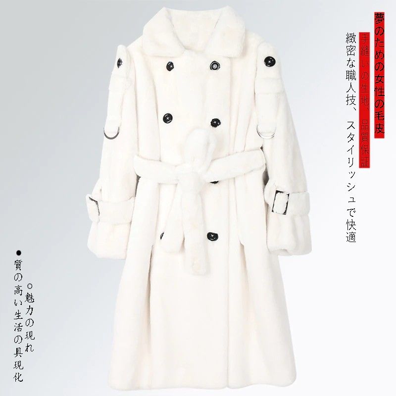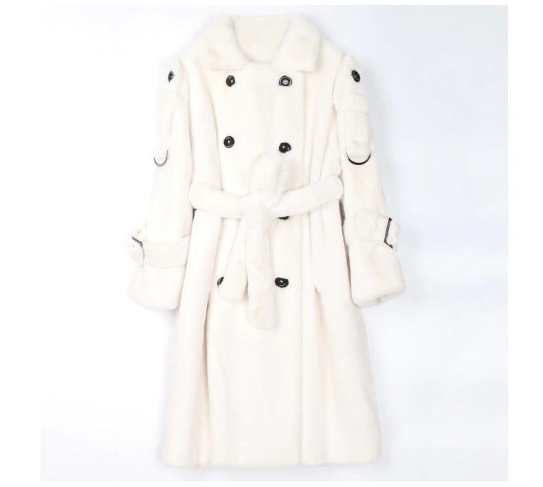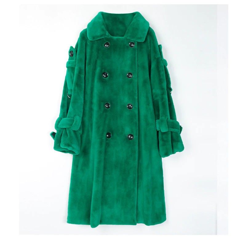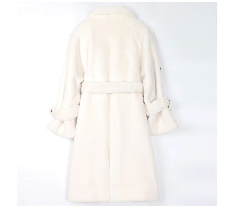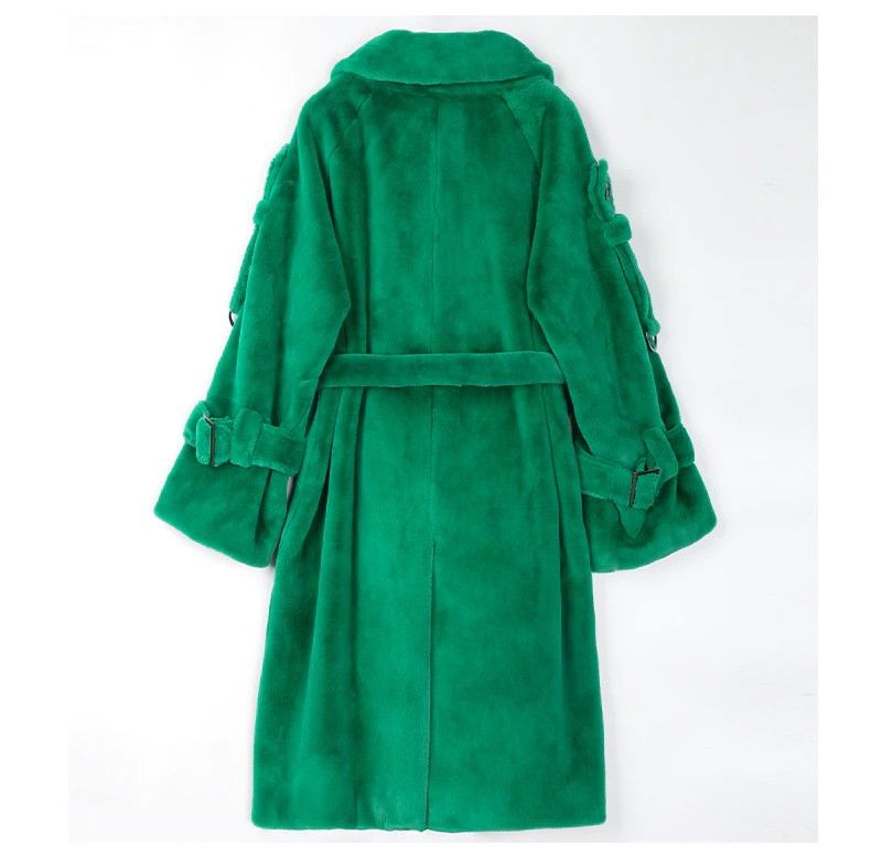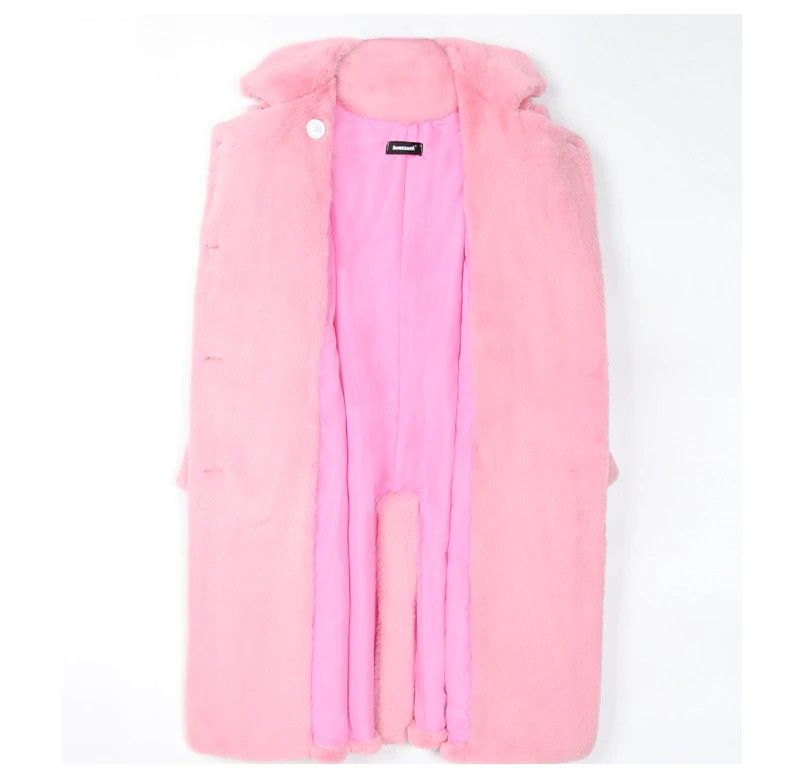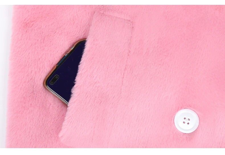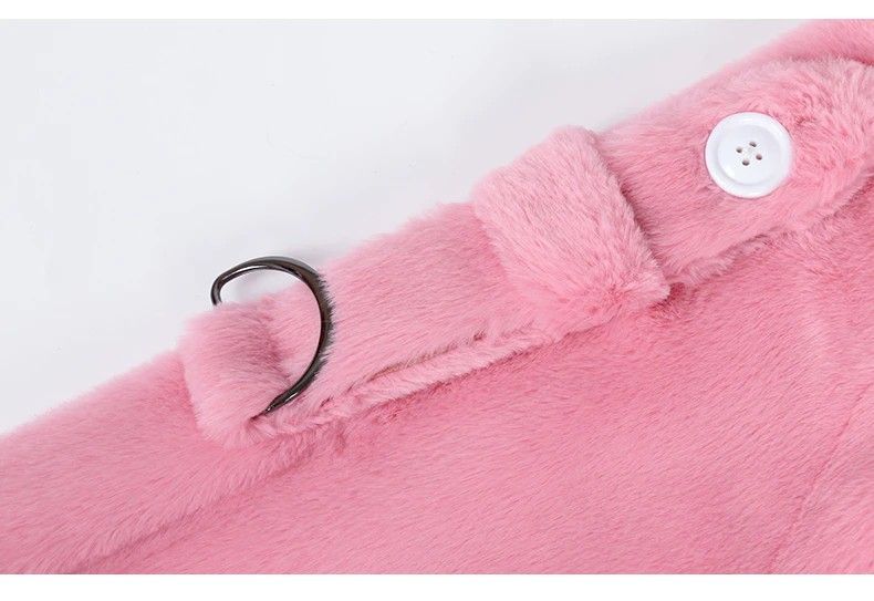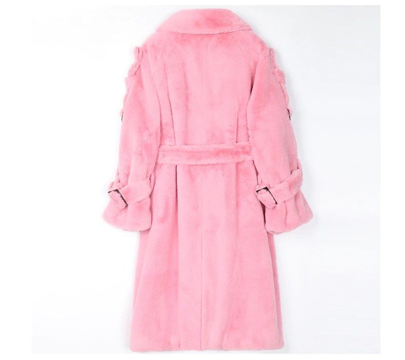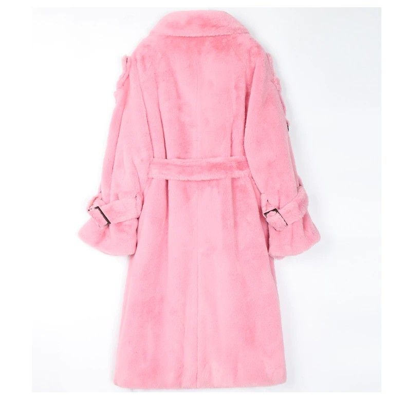 Nerazzurri Lange Warme Pluizige Faux Fur Trenchcoat Voor Vrouwen Laatste Double Breasted Roze Wit Groen Plus Size Winter Mode Riem
