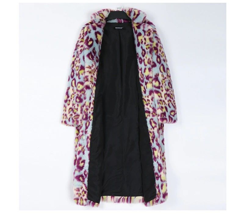 Nerazzurri Veelkleurig Lange Luipaard Print Faux Bontjas Vrouwen Revers Warm Womens Plus Size Mode Winter Kleding Laatste 6Xl 7Xl