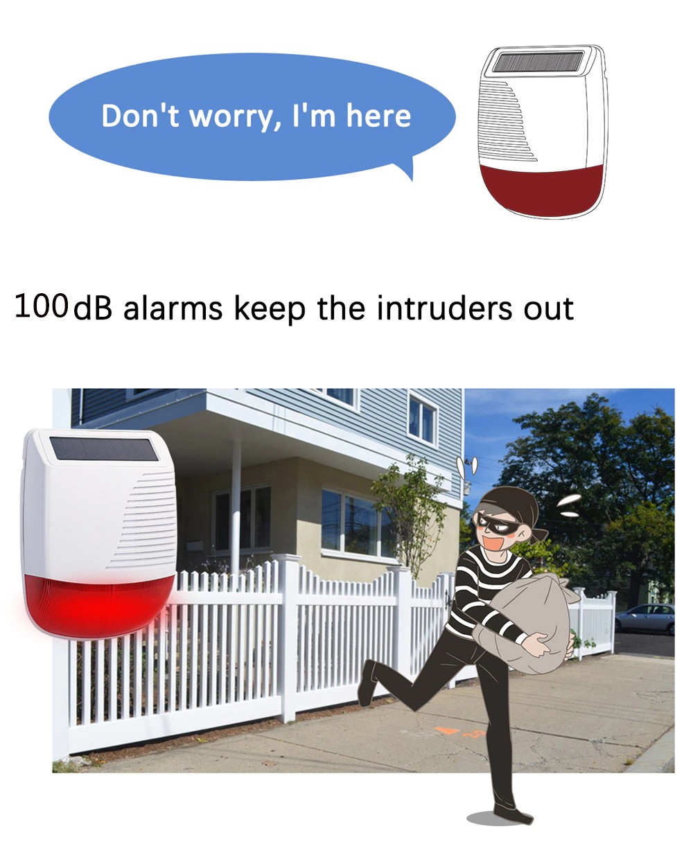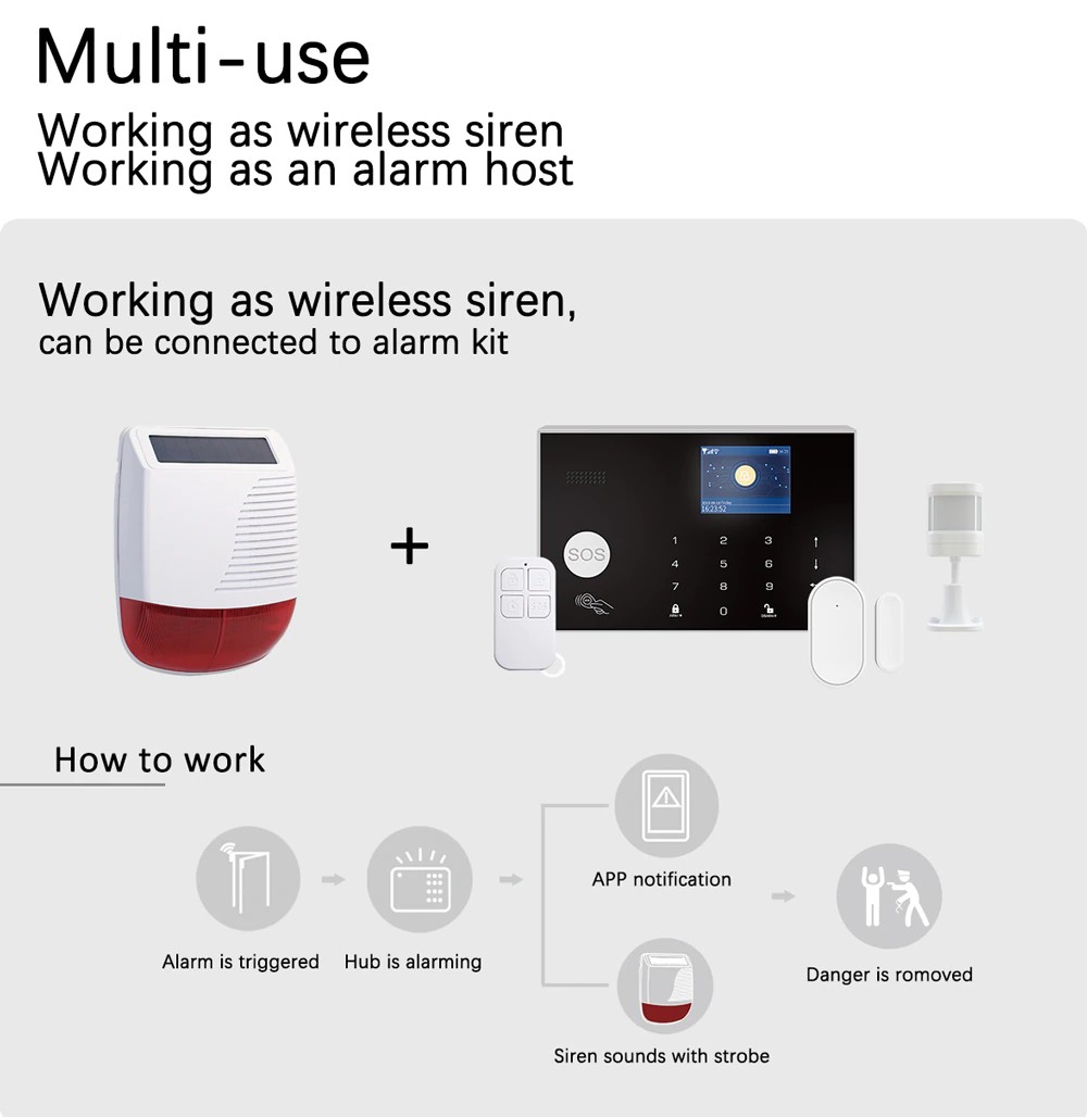 Nieuwe 433Mhz Wireless Solar Waterdichte Strobe Sirene Licht Flash Outdoor Voor Thuis Inbreker Wifi 4G Gsm Beveiliging Alarm Systeem