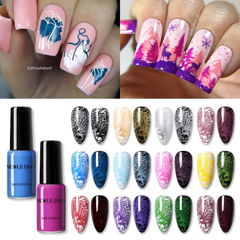 Nicole Dagboek Stempelen Nagellak Zwart Wit Goud Zilver Nail Art Printing Varnish Diy Ontwerp Voor Stempelen Plaat Nagels Lakken