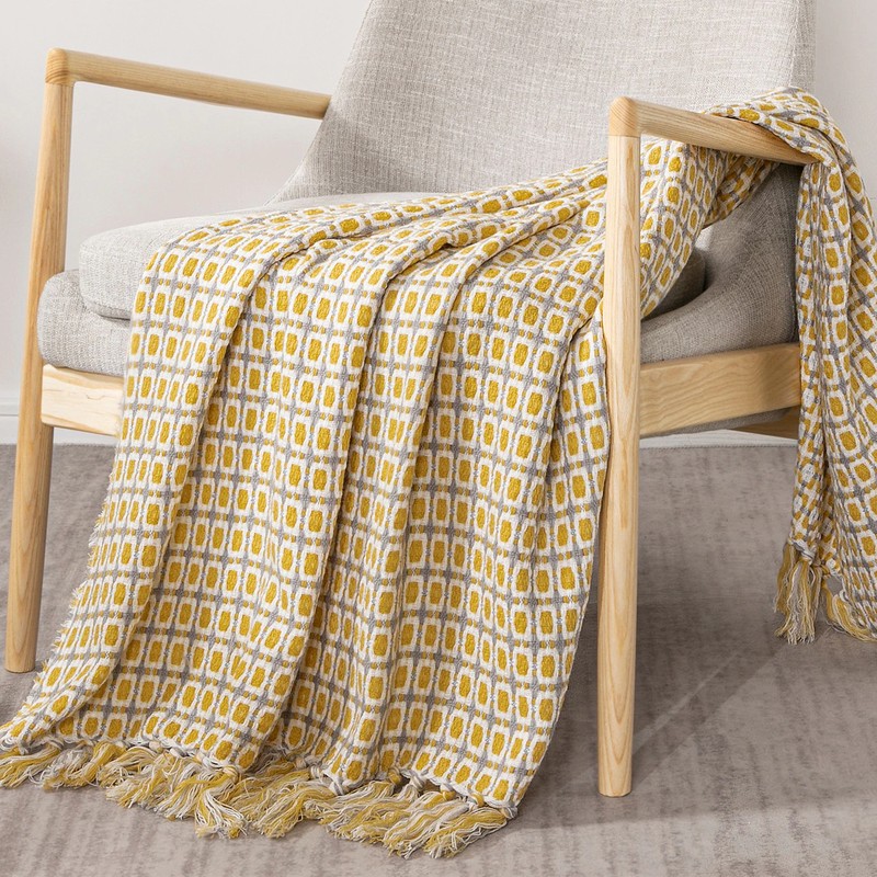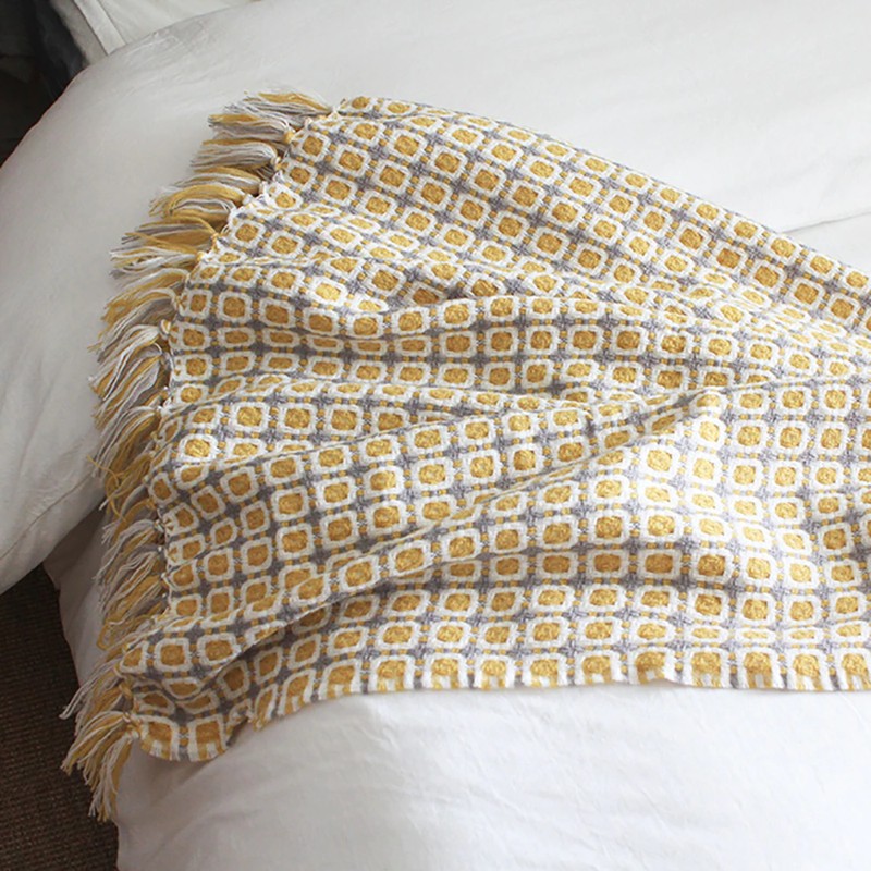 Twee kleuren (Geel en Grijs) Gebreide Deken