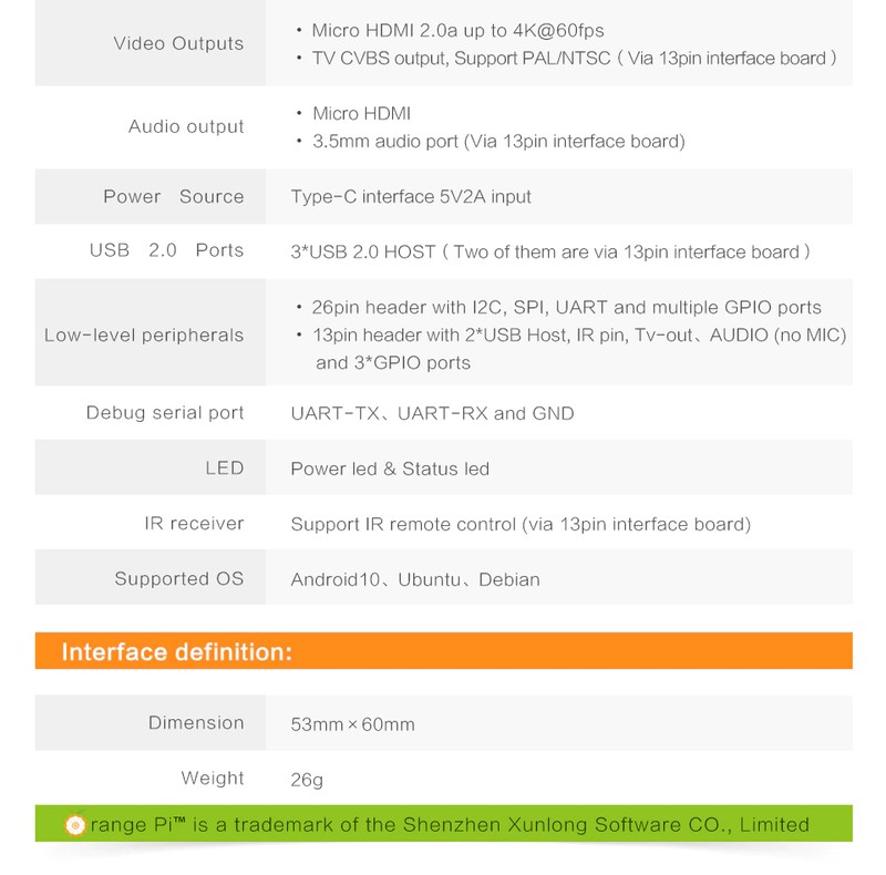 Oranje Pi Nul 2 1Gb Ram Met Allwinner H616 Chip, Ondersteuning Bt, Wifi Run Android 10 Ubuntu, Debian Os Single Board
