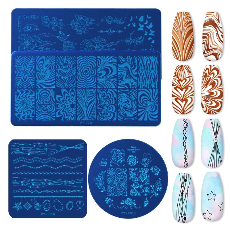 Pict U Geometrie Nail Stempelen Platen Lijnen Dier Vruchten Thema Template Plaat Gietvorm Nail Art Stencil Gereedschap