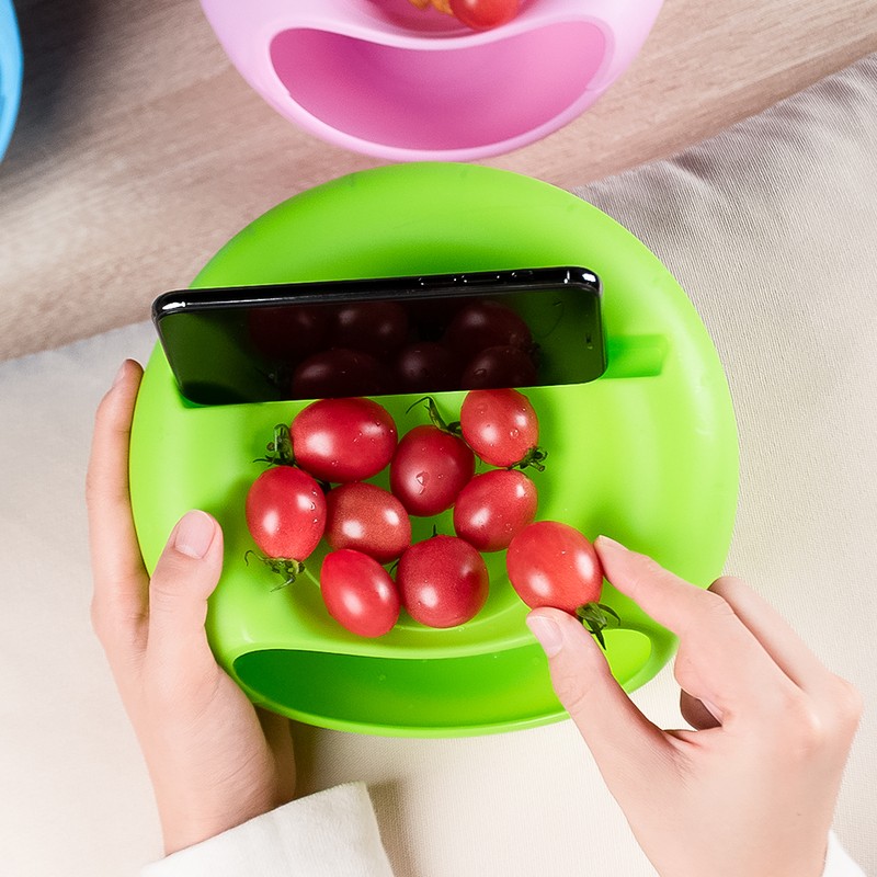 Double Layer Snacks Opslag Container Huishouden Plaat Schotel Organisator met Telefoon Slot Stand Houder Voor Pistache, Pinda, zonnebloempitten, Edamame, Kersen, Snoepjes