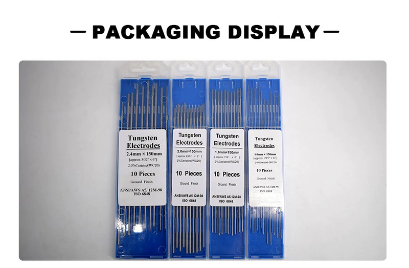 Houdt u weet, hebben we allerlei TIG Lassen Electrods, WP, WC20, WT20, WL10,WL15, WL20, WZr3, WZr8, WY20 en diameter van 1.0-10mm zijn beschikbaar,