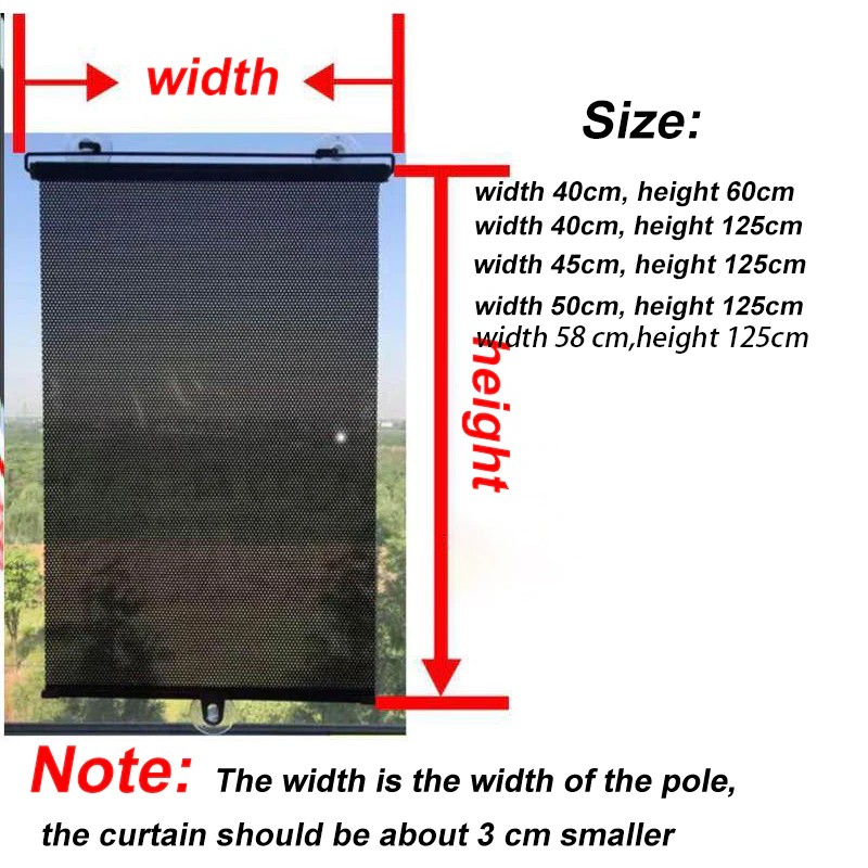 De breedte van de roller blind is de totale lengte van de paal, en de grootte van het gordijn moet ongeveer 3 cm kleiner