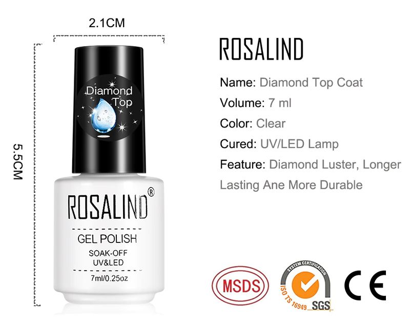 Rosalind Gel Polish Diamant Top Coat Uv Lamp Gel Losweken Versterken 7 Ml Langdurige Nail Art Manicure Gel Lak Vernis Primer
