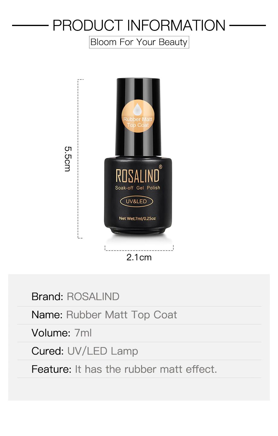 Rosalind Rubber Matt Top Jas Matt Nagellak Vernis Semi Permanant Uv Lamp Voor Manicure Geen Vegen Langdurige Topcoat