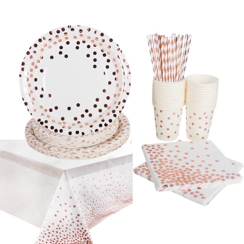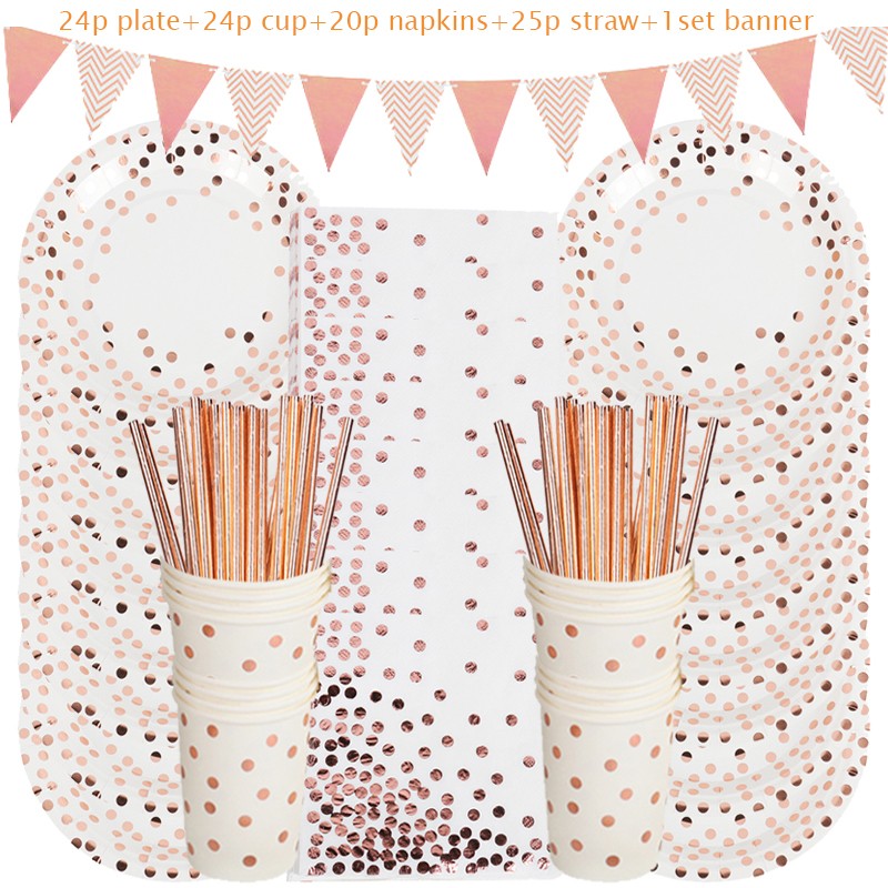 Rose Gouden Verjaardag Decoraties Wegwerp Servies Set Papier Cup Volwassen Bruiloft Verjaardagsfeestje Decoraties Kids Babyshower Meisje