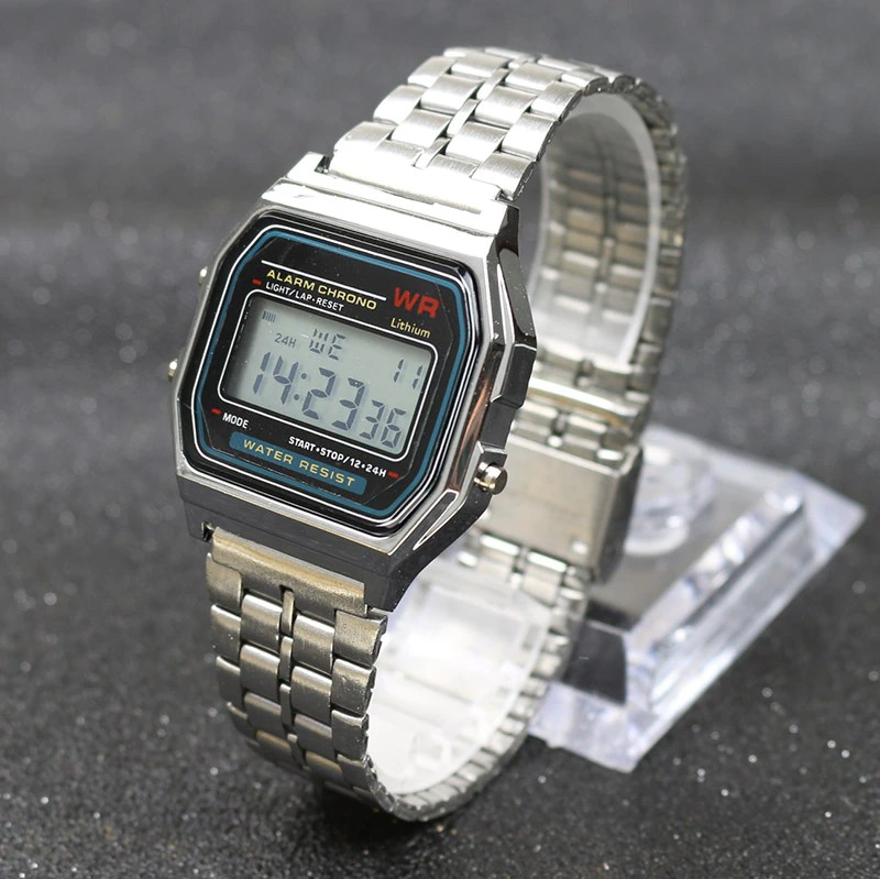 1PC Vintage Vrouwen Mannen Rvs Digitale Alarm Stopwatch Polshorloge (Zonder detailhandel verpakking)