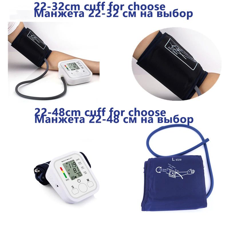 Bij het bestellen, model naam met 3 kleur heeft backlight en stem. 3colorRuVoice betekent Russische Voice. 3colorENVoice betekent Engels Voice. Model Naam zonder 3 kleur niet hebben backlight noch Stem. Dan u kiezen u grote manchet of normale manchet. Model naam met 22-48 is grote manchet.