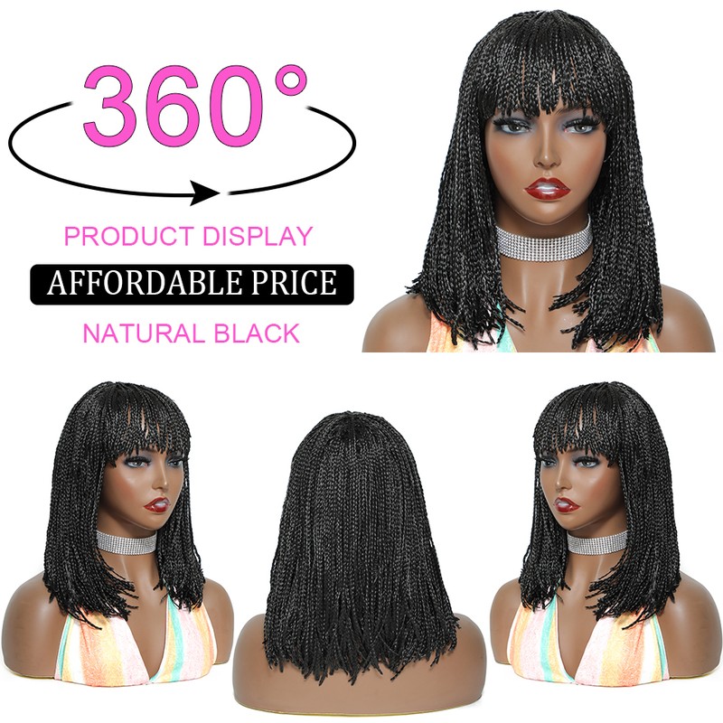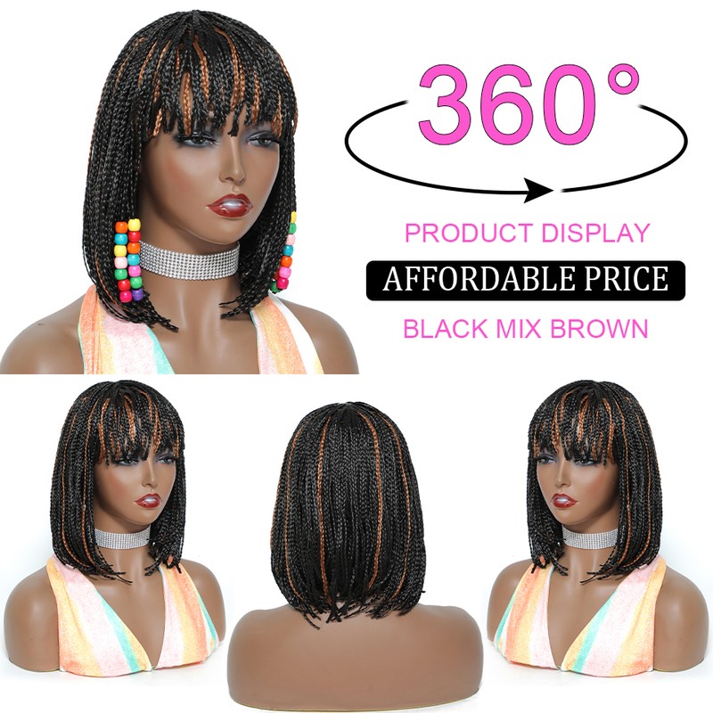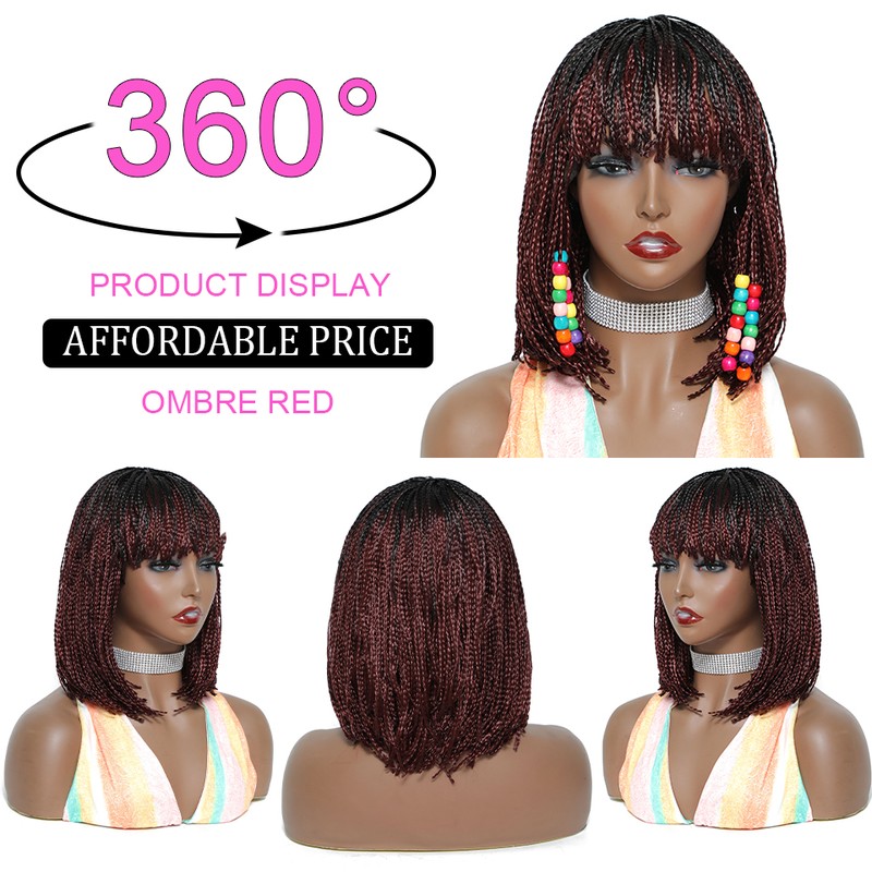 Korte Gevlochten Pruiken Voor Zwarte Vrouwen Hittebestendige Haak Doos Gevlochten Bob Pruik Met Pony Afrikaanse Synthetische Vlechten Haar Pruik Bob