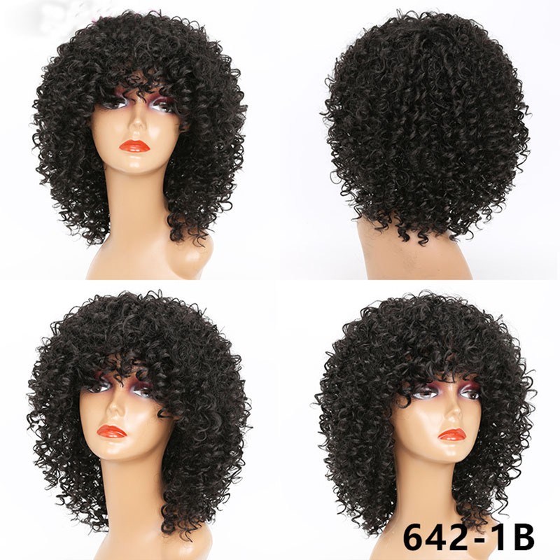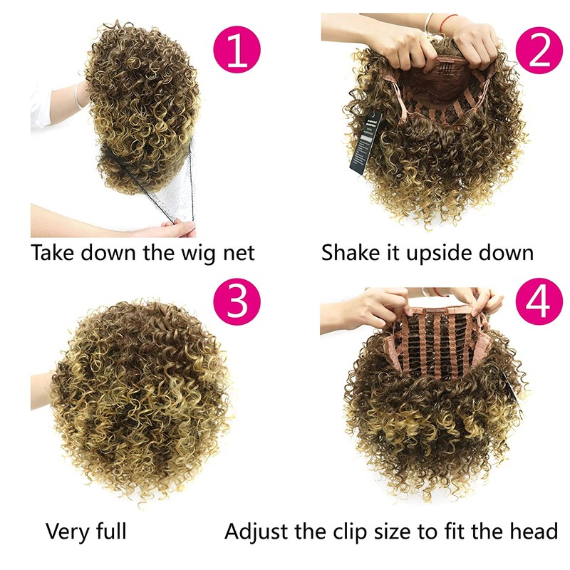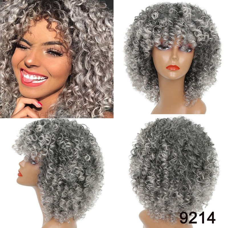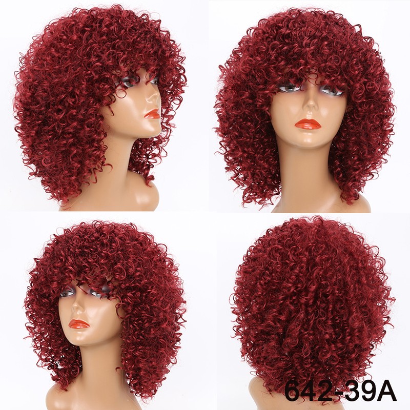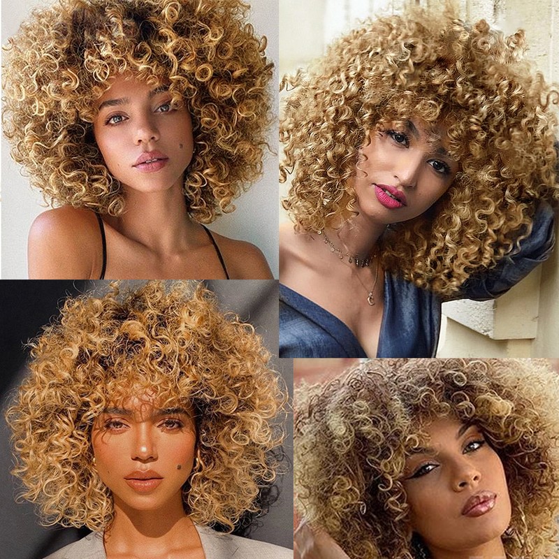 Kort Krullend Blonde Pruik Voor Zwarte Vrouwen Afro Kinky Krullend Pruik Met Pony Synthetische Natuurlijke Lijmloze Ombre Bruin Blond Cosplay Pruik