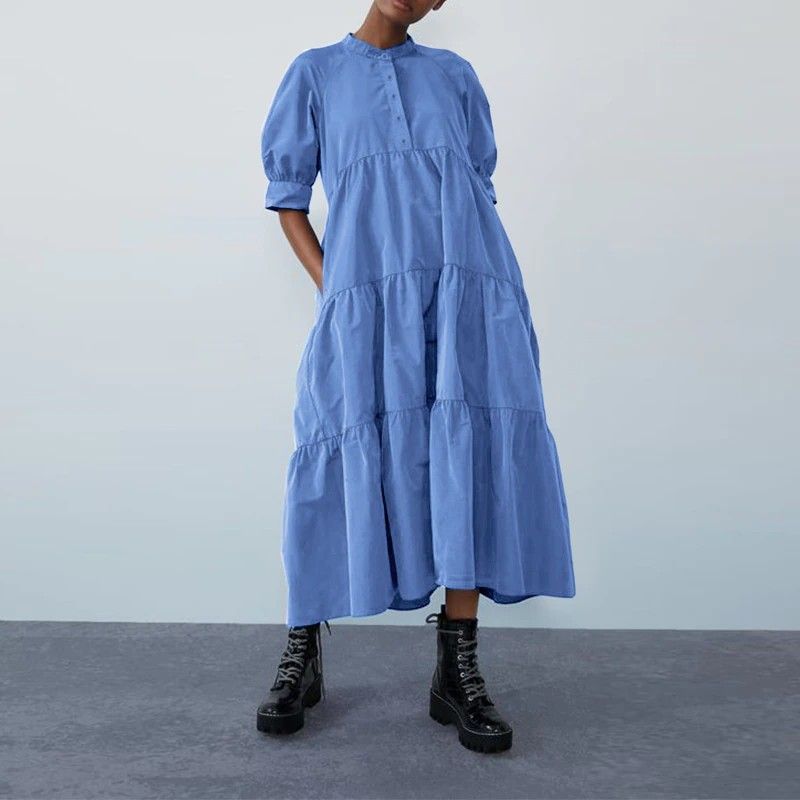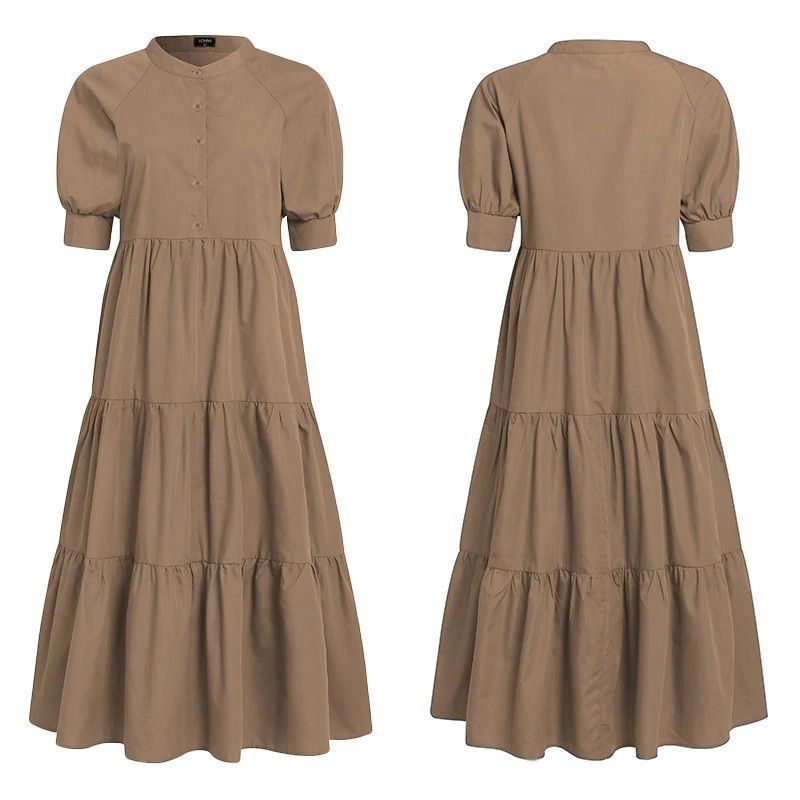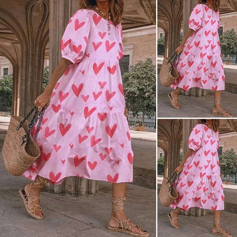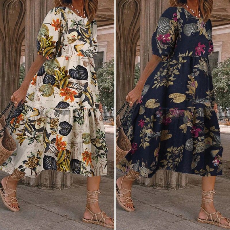 Zomer Jurk Vintage Sexy Lantaarn Mouw Mid-Kalf Jurk Strand Boheems Women'Summer Zonnejurk Nieuwste Vonda Casual Vestido