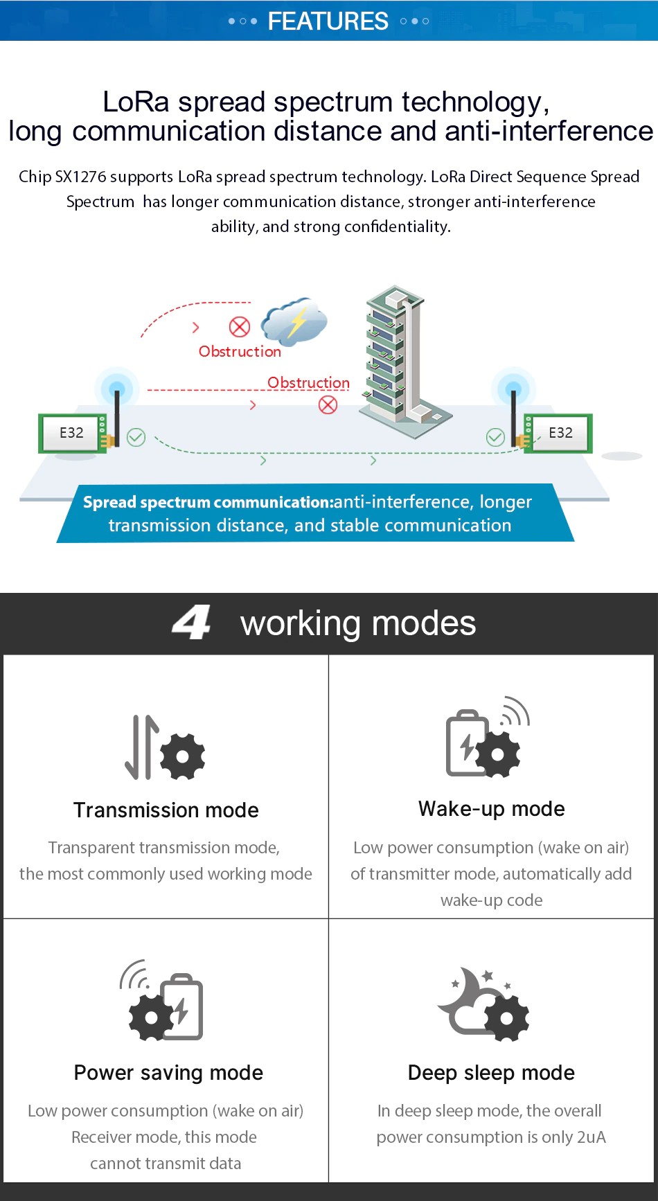 Sx1276 868Mhz 100Mw Smd Draadloze Transceiver Cdsenet E32-900T20S 915Mhz Ttl 5000M Long Range Lora Ipex Zender En Ontvanger