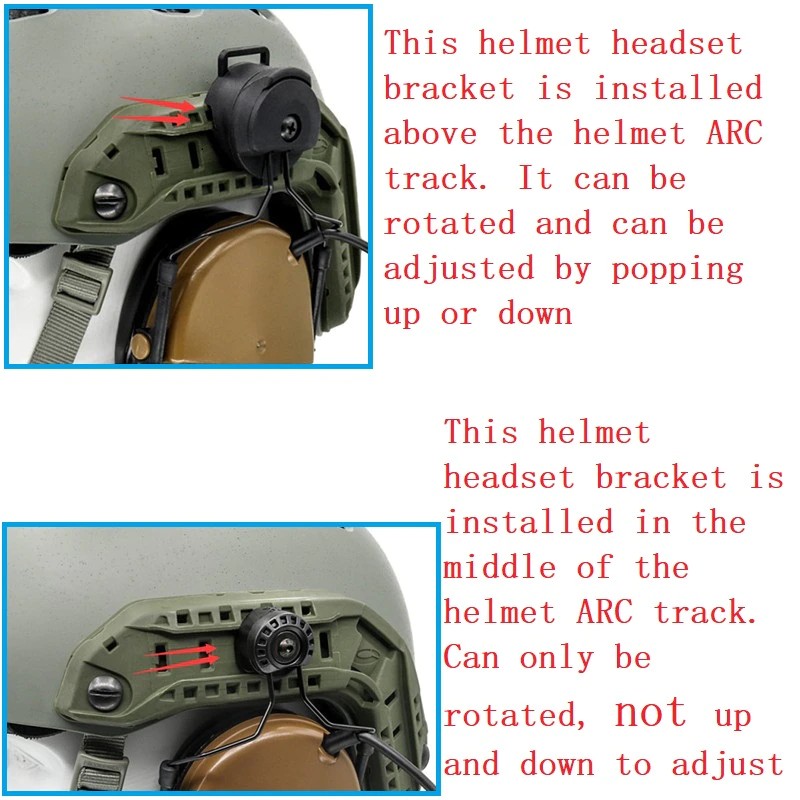 Rail Adapter: kan gebruikt worden op volledige bereik van FAST helmen, ACH helmen, MICH helmen, etc die hebben ARC rails op kant.