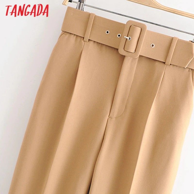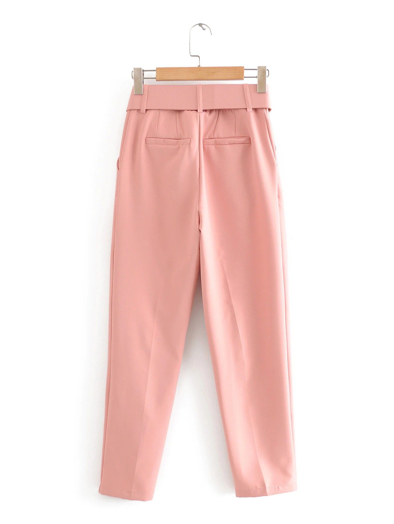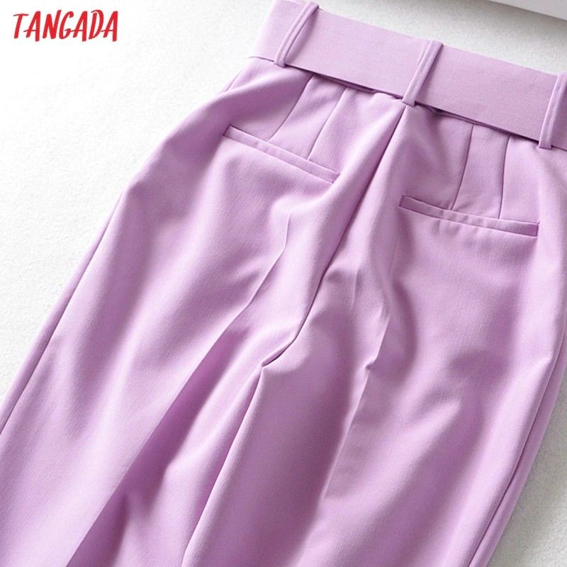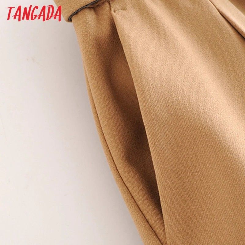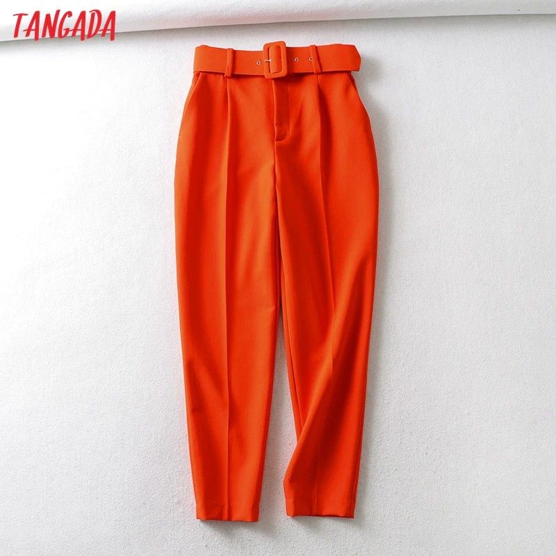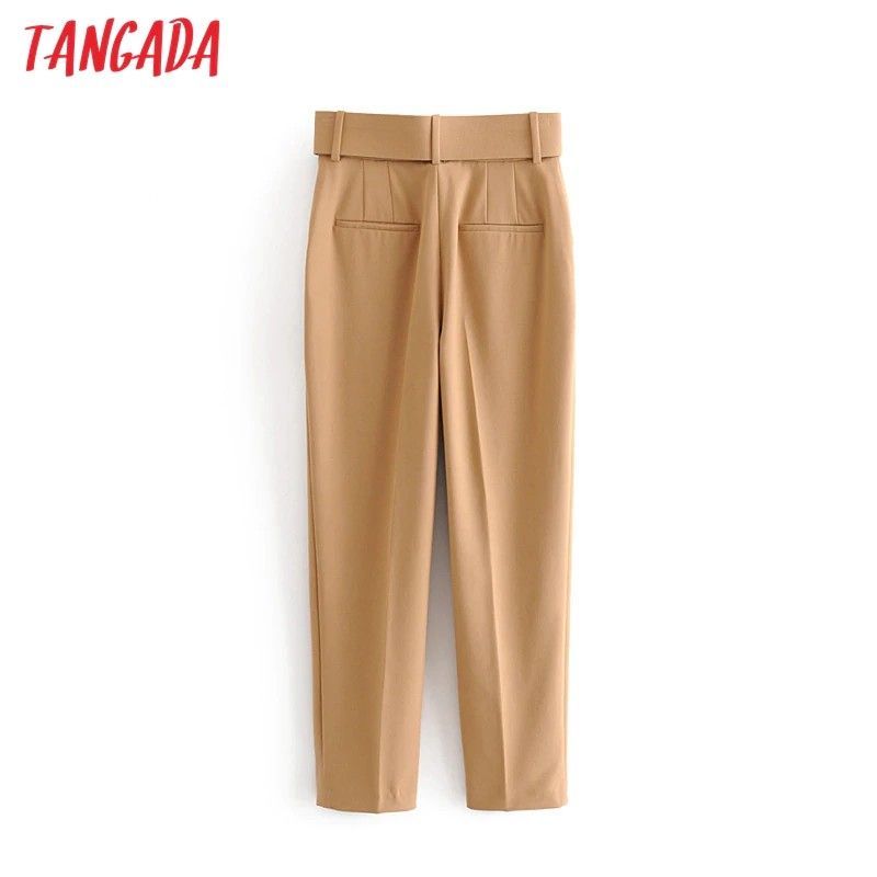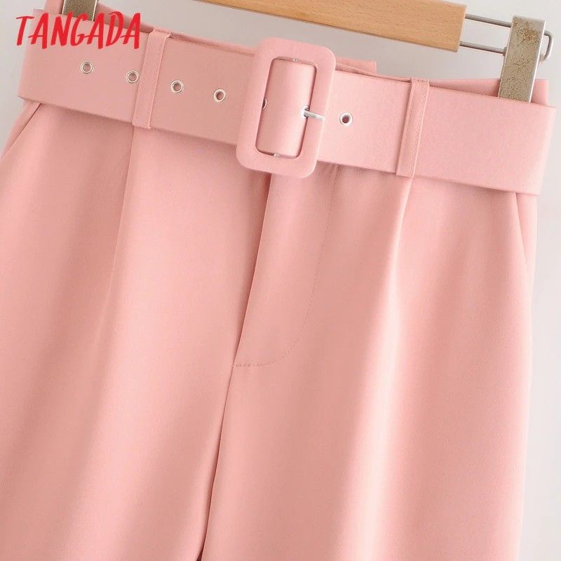 Tangada Zwart Pak Broek Vrouw Hoge Taille Broek Sjerpen Zakken Kantoor Dames Mode Midden Aged Roze Geel Broek 6A22
