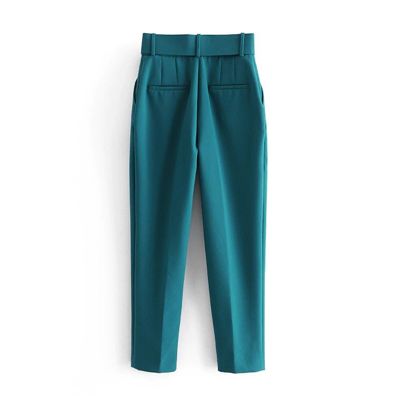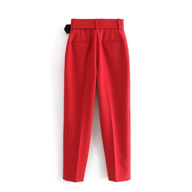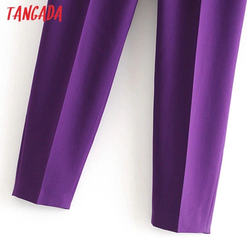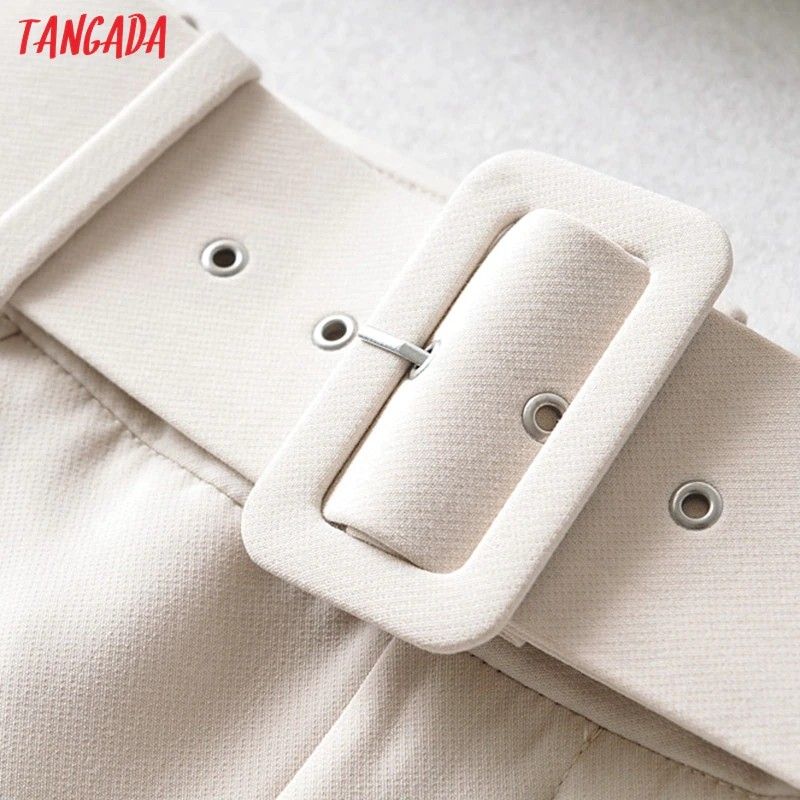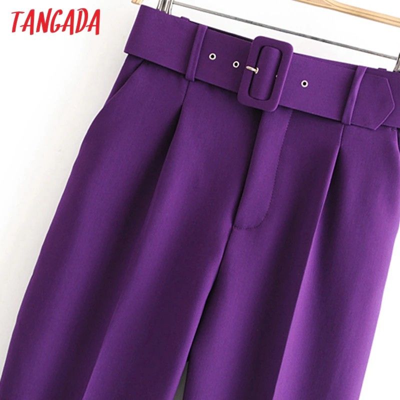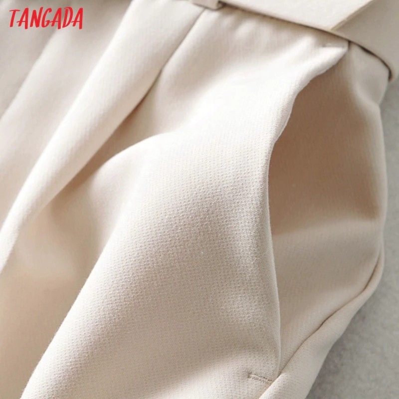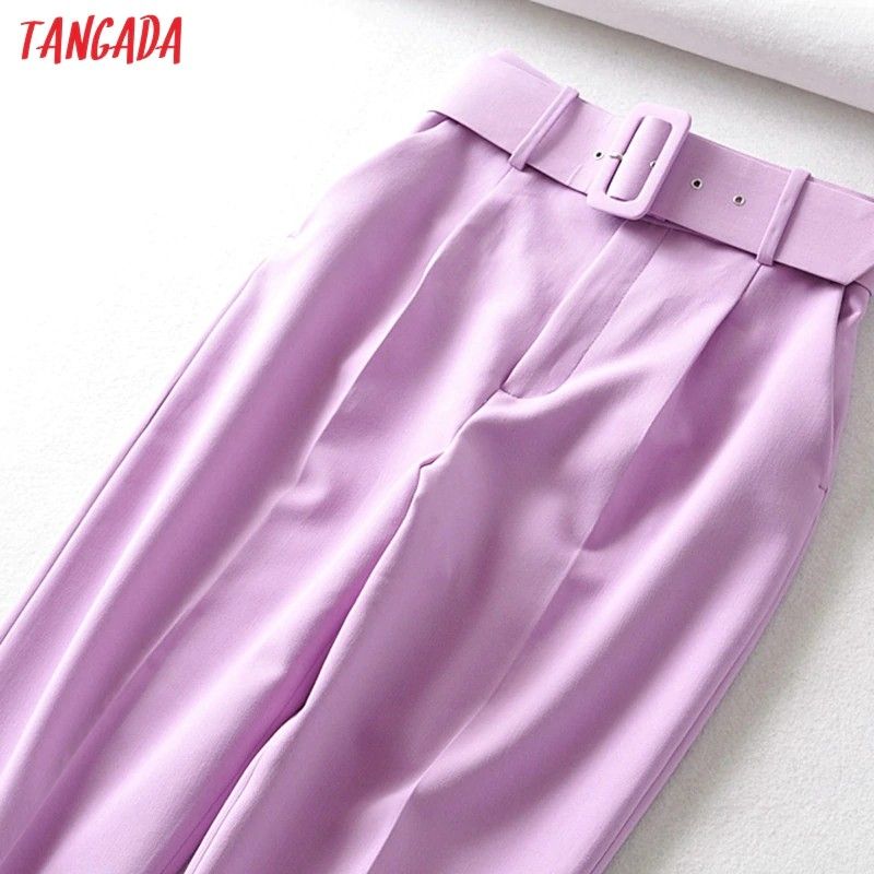 Tangada Zwart Pak Broek Vrouw Hoge Taille Broek Sjerpen Zakken Kantoor Dames Mode Midden Aged Roze Geel Broek 6A22