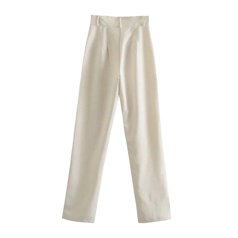 Traf Vrouwen Chic Fashion Kantoor Slijtage Rechte Broek Vintage Hoge Taille Rits Vrouwelijke Broek Vrouw
